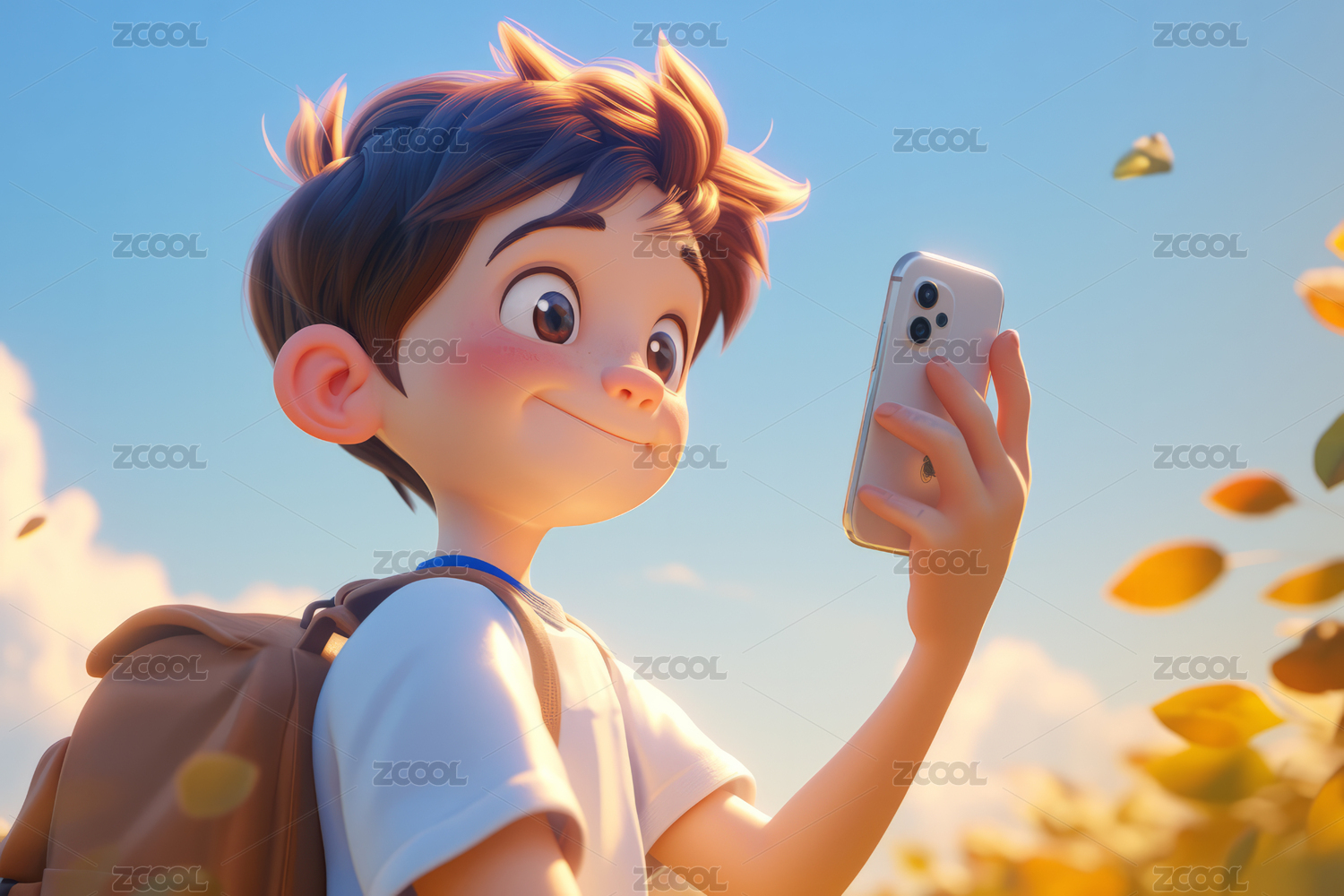 小男生背书包