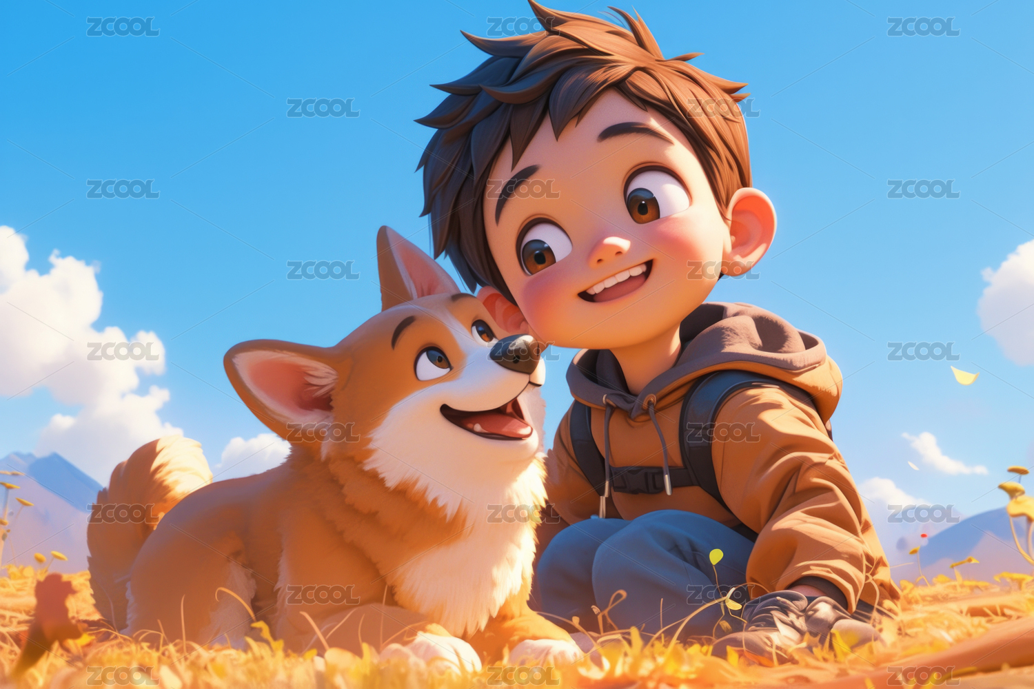 3D卡通狗和一个人的动画插图