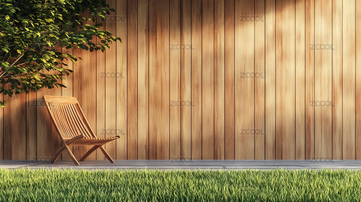 别墅后院木质地板和草地无人空间背景