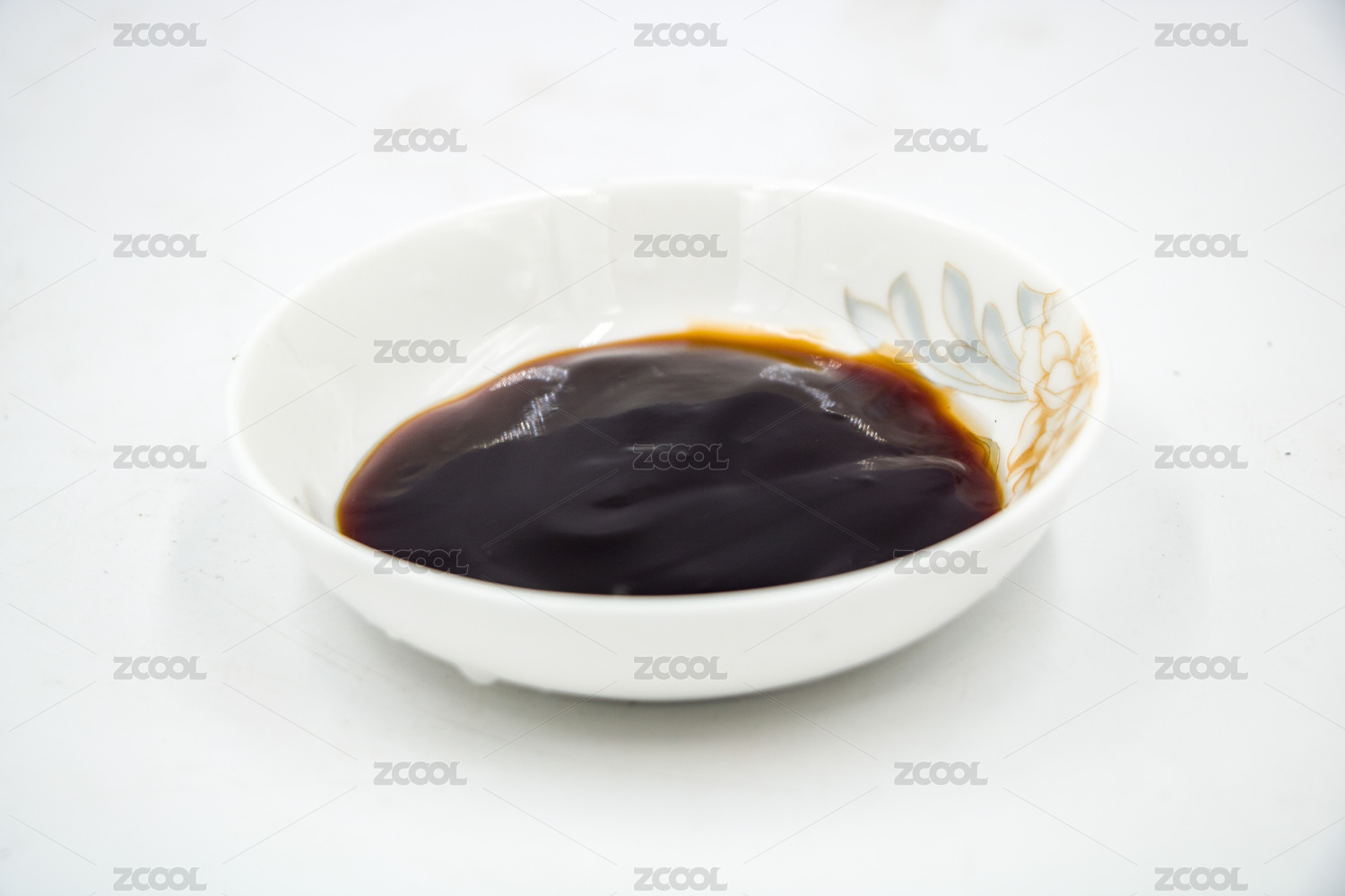 白碟装的红油放着白色背景上
