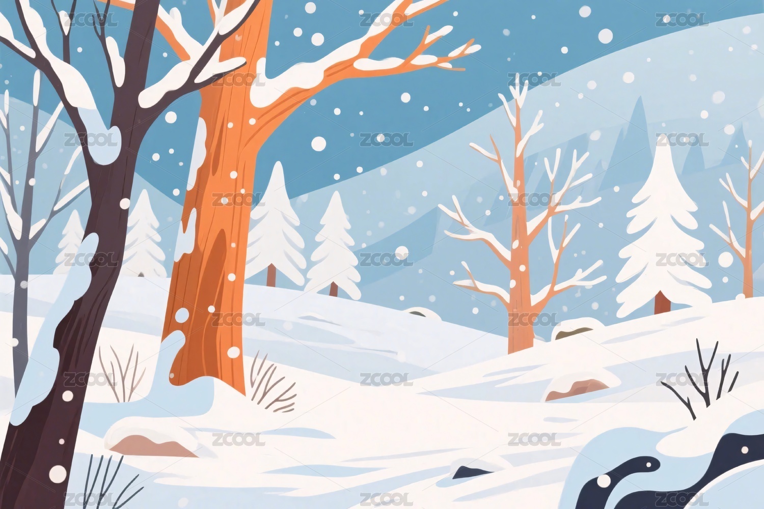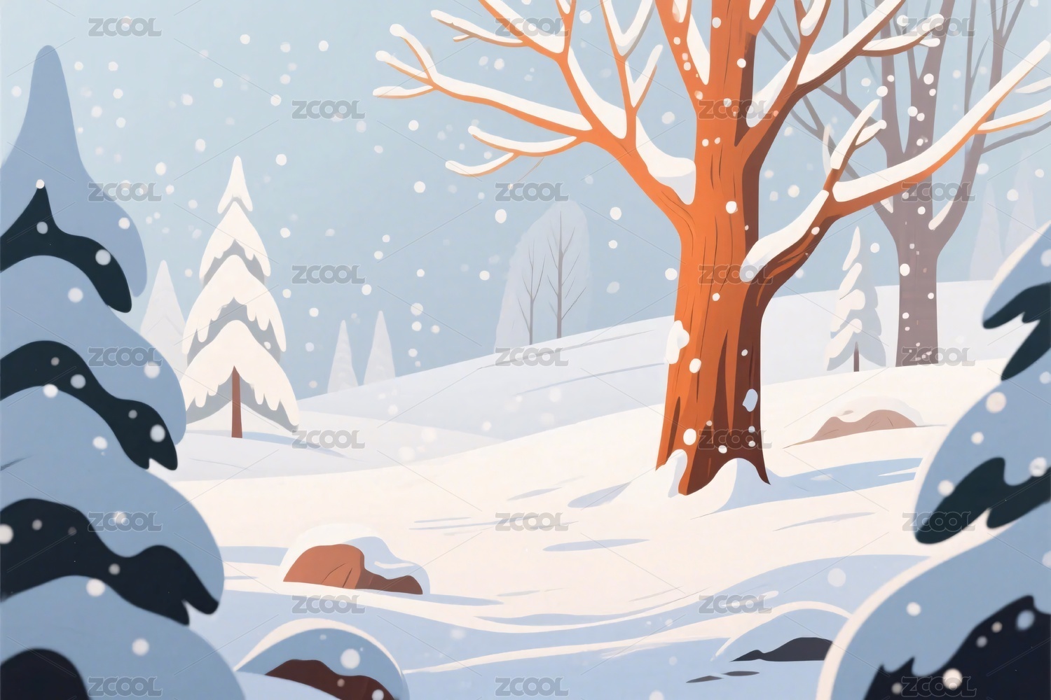 立冬节气冬天森林大雪户外旅行节日场景插画