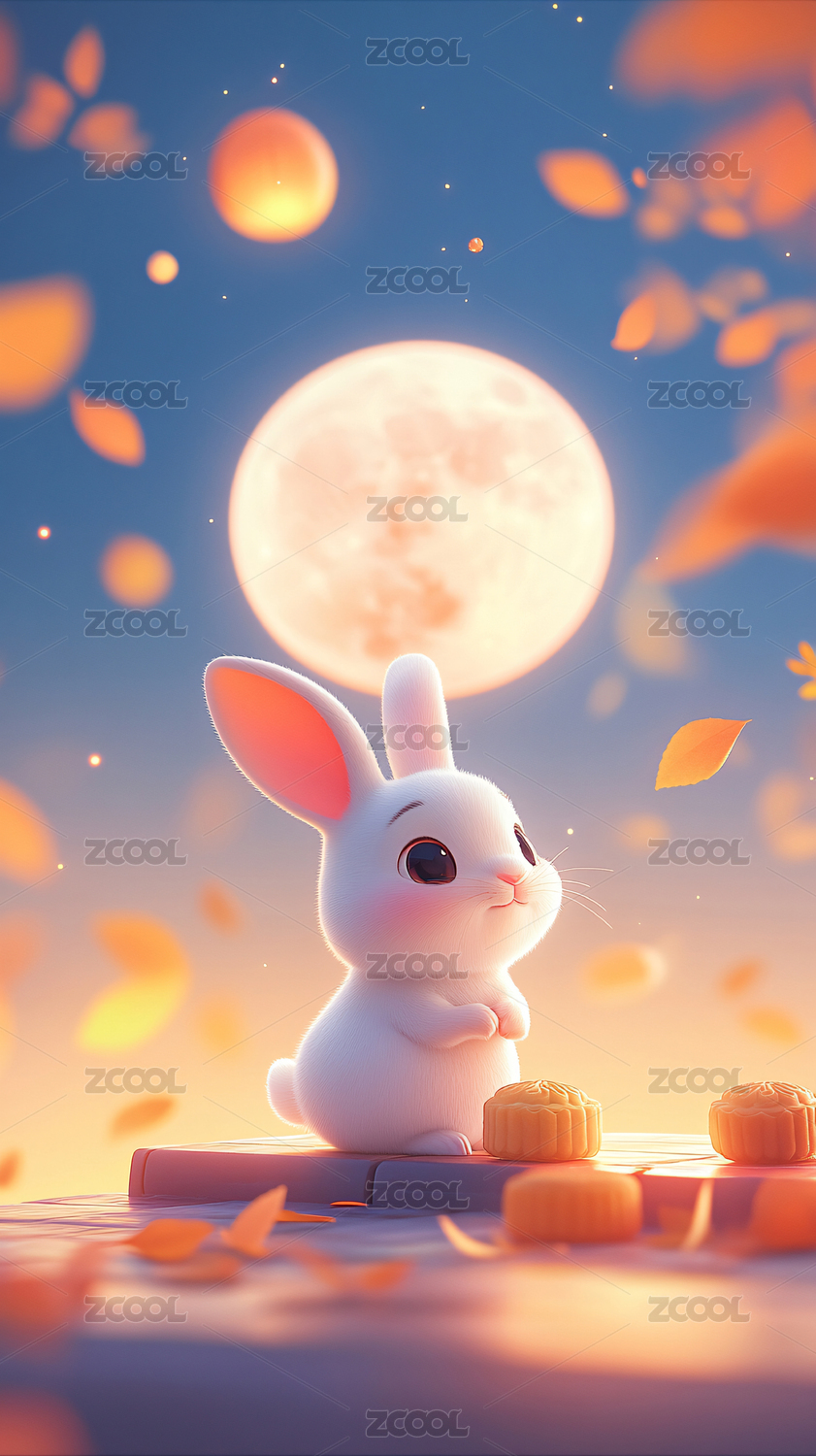 中秋节兔子吃月饼场景