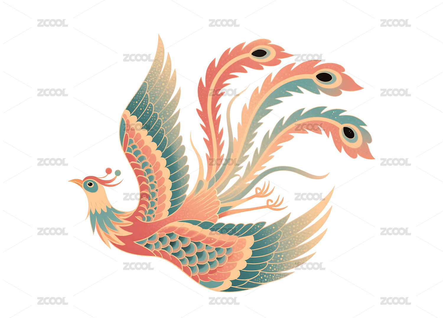 国潮风格凤凰插画素材
