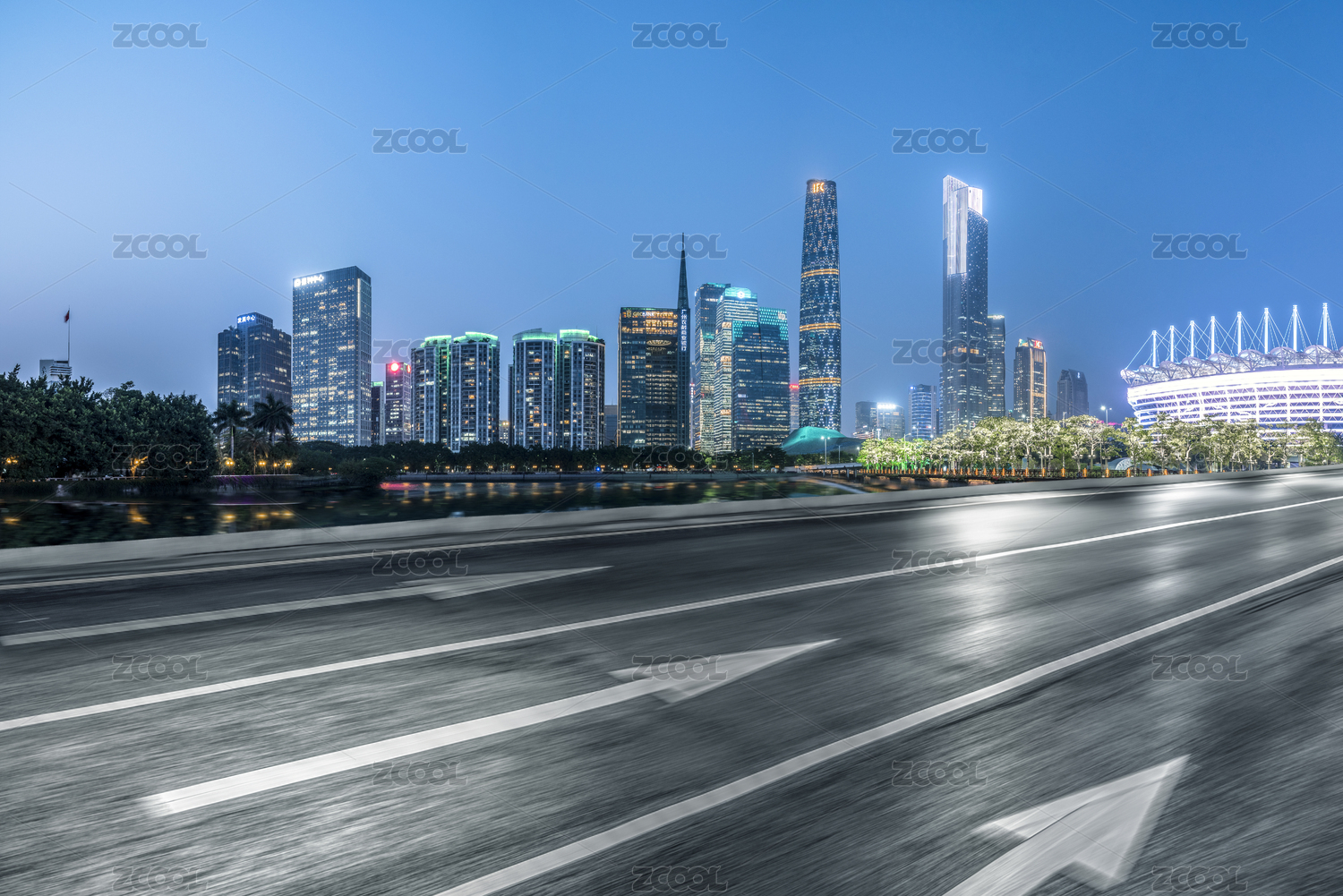 广州晚上的灯火通明的CBD和从旁边经过 的公路