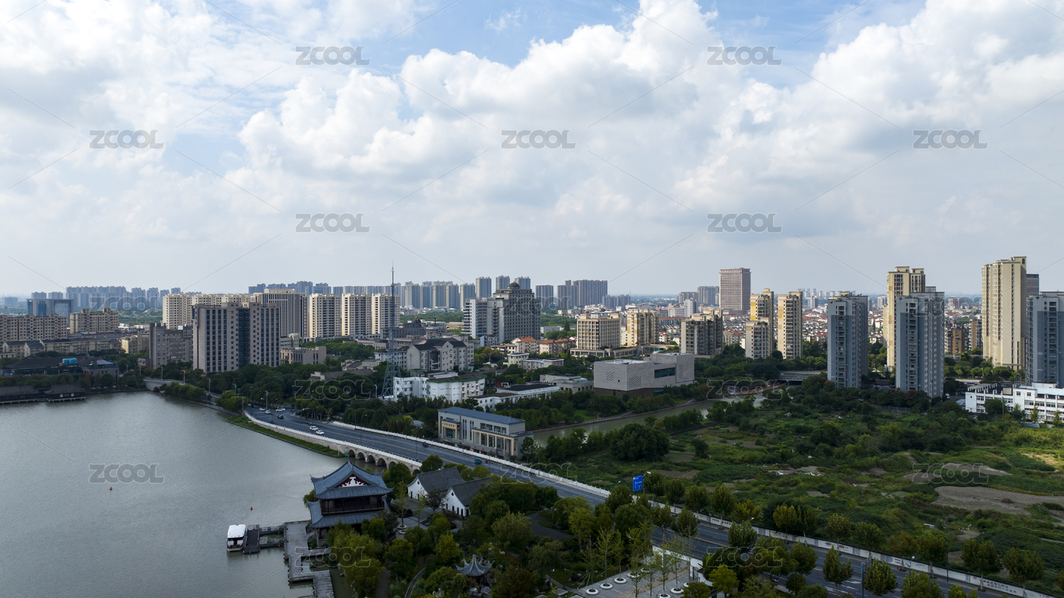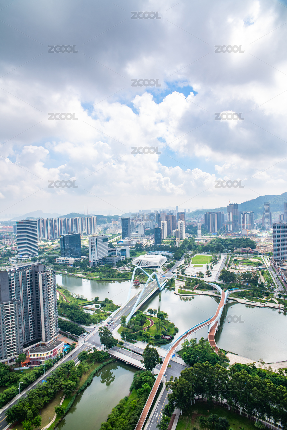 中国广东佛山三山新城文翰湖公园和季华实验室航拍