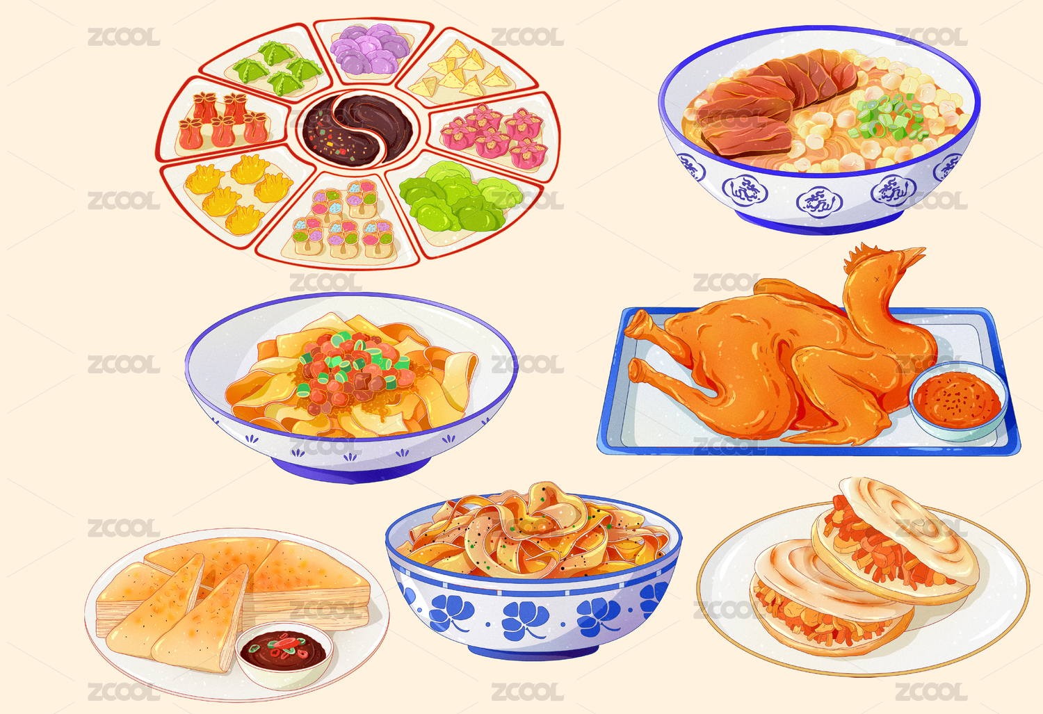 各类中式美食插画