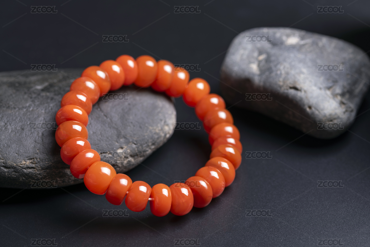 黑背景南红手串特写