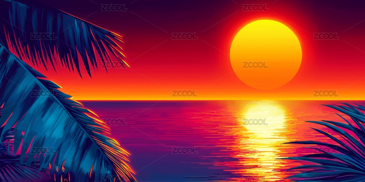 海边,日出,日落,太阳,风景,背景,插画,风格,唯美,浪漫