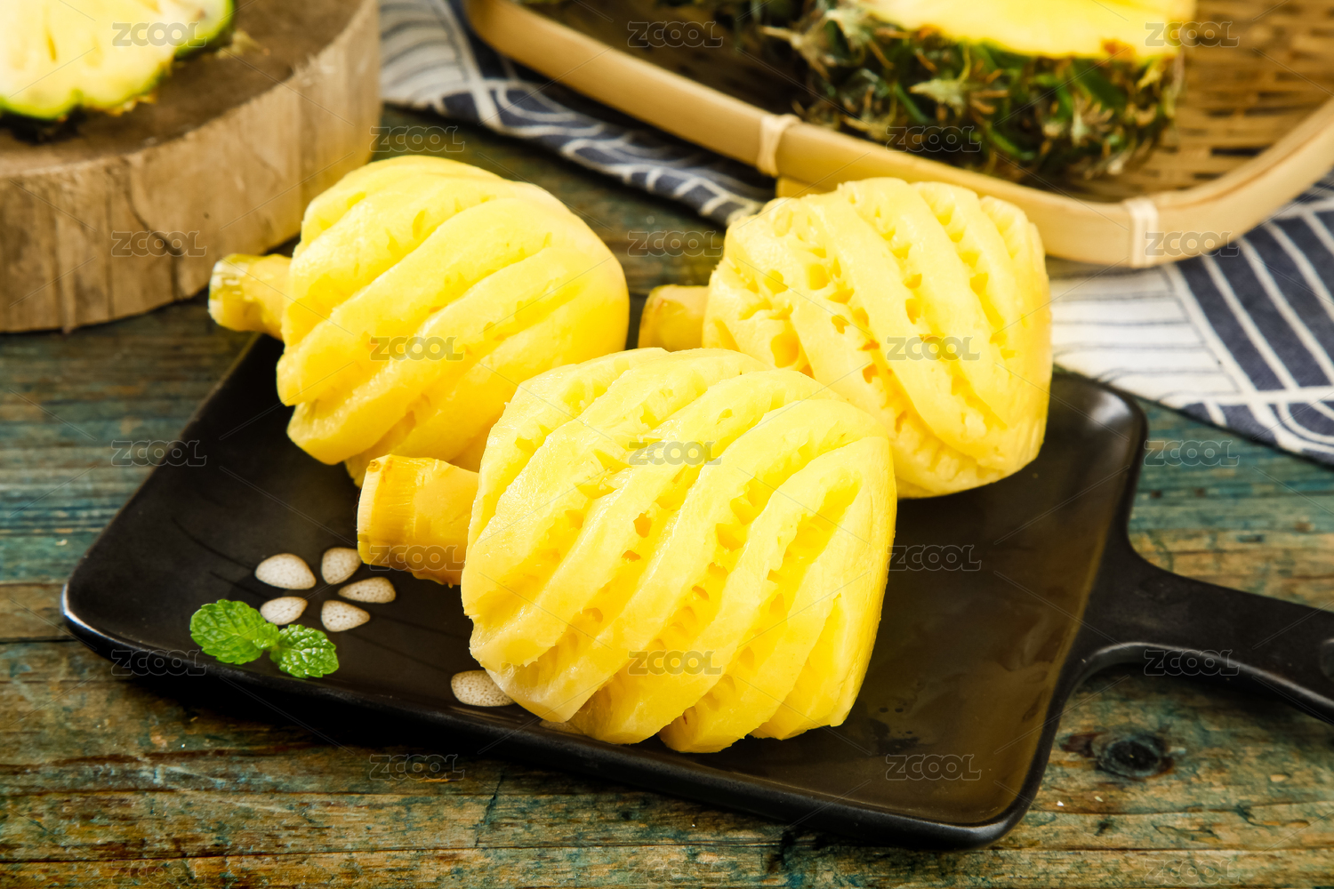 黑底上放着黄心小土豆和削皮的黄金小土豆