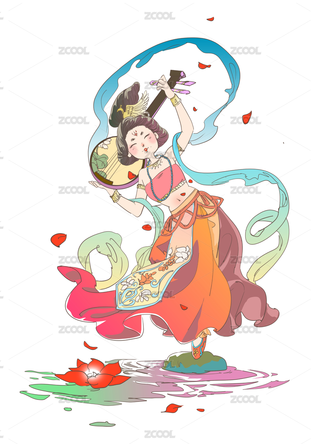 莲花灯晚会歌舞升平手持琵琶的舞女