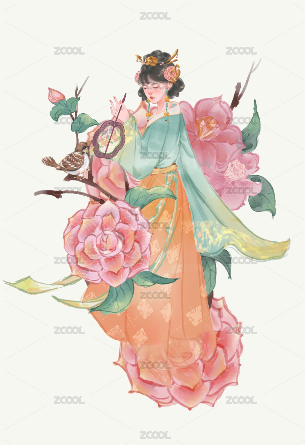 古风国潮汉服美女节日节气花朵荷梅水仙牡丹