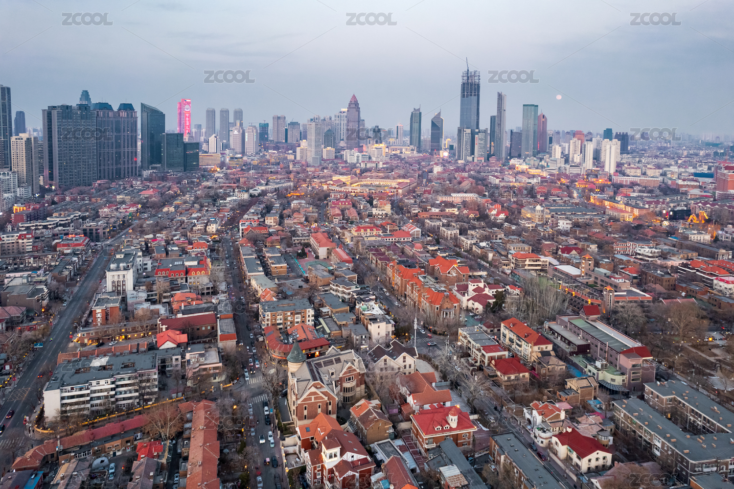 天津,五大道,文化旅游区,日落,航拍,天际线,建筑,街道,俯拍,高视角