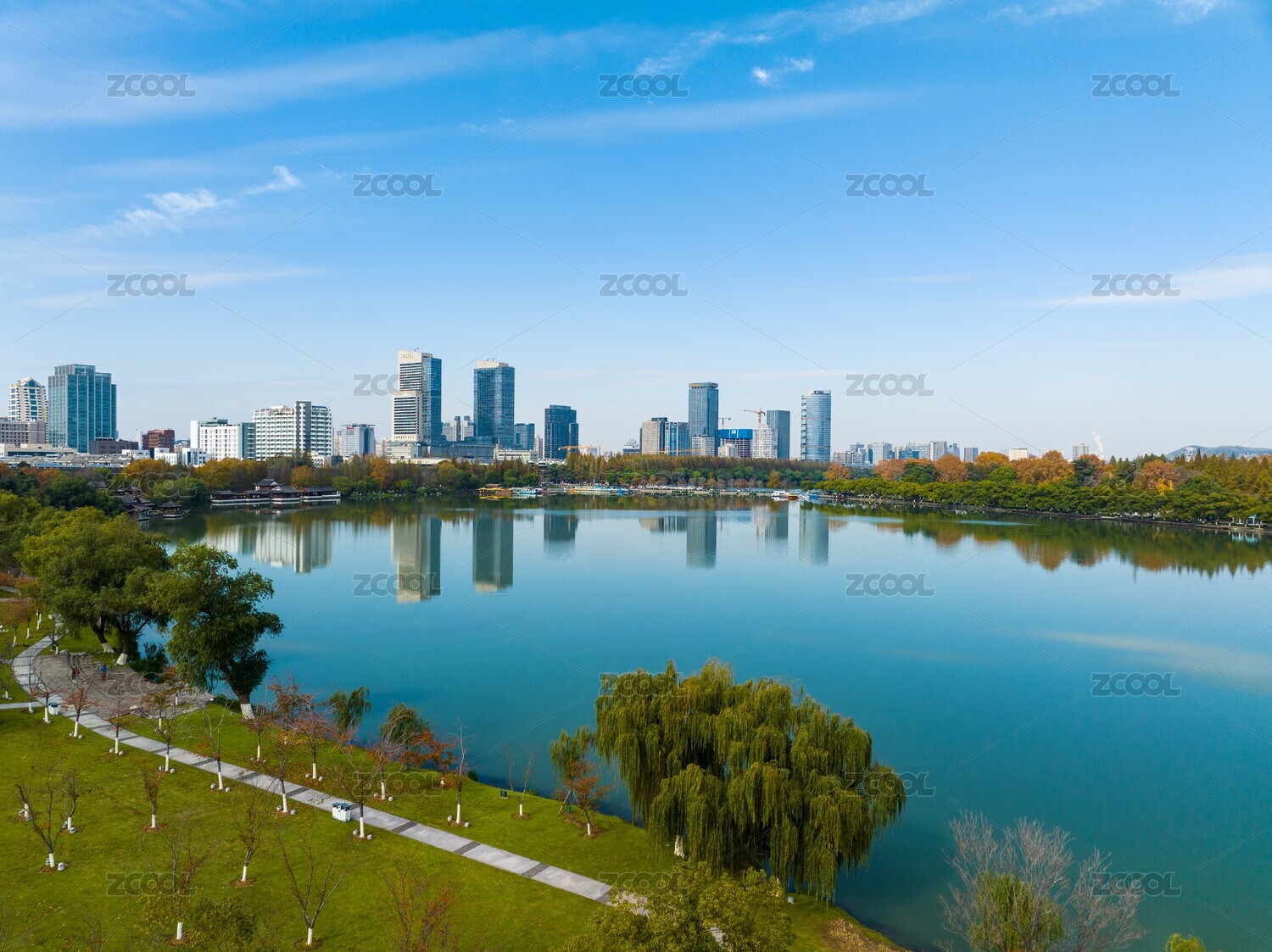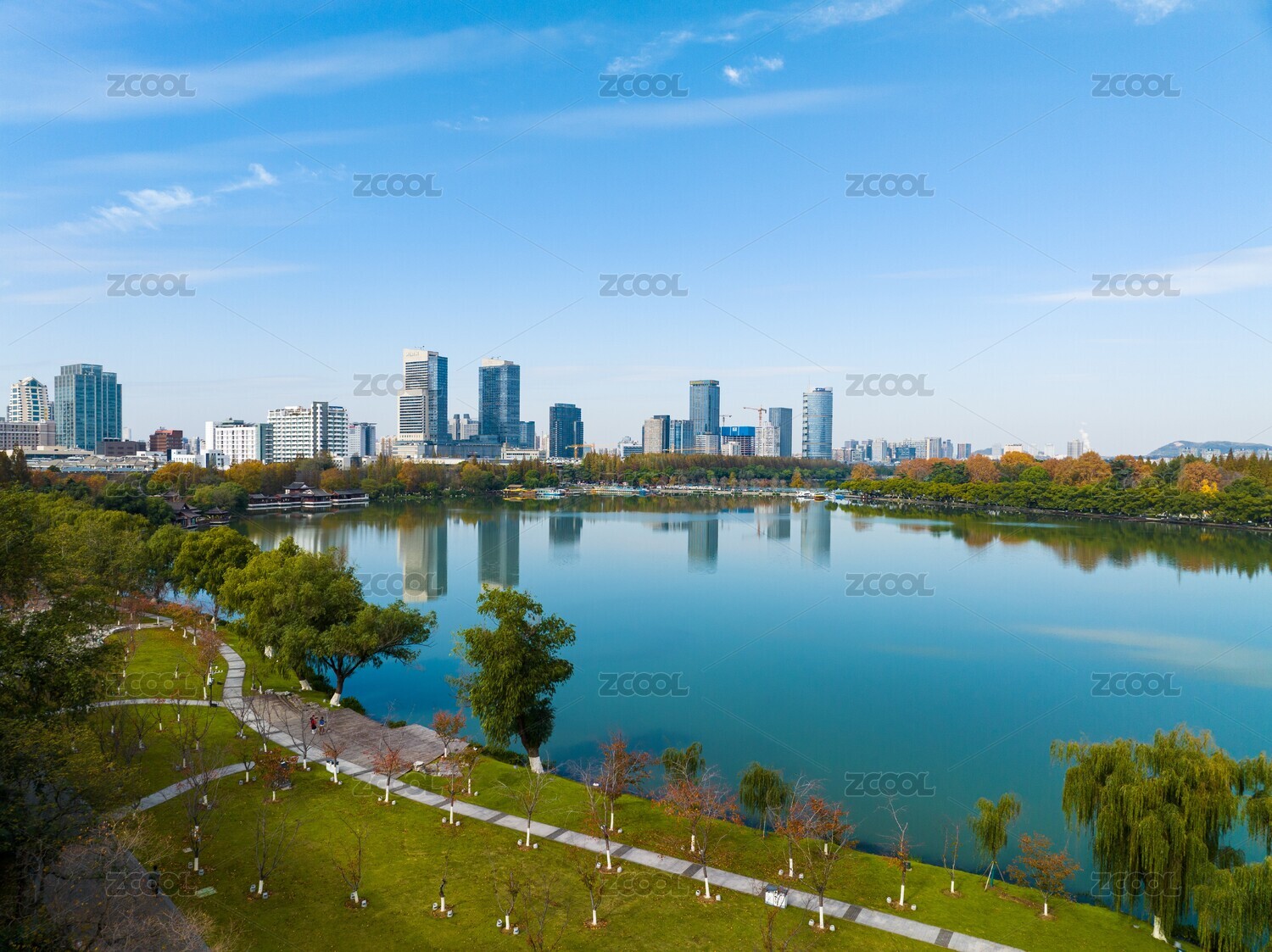 绍兴市柯桥区城市风光航拍,瓜渚湖湖滨公园
