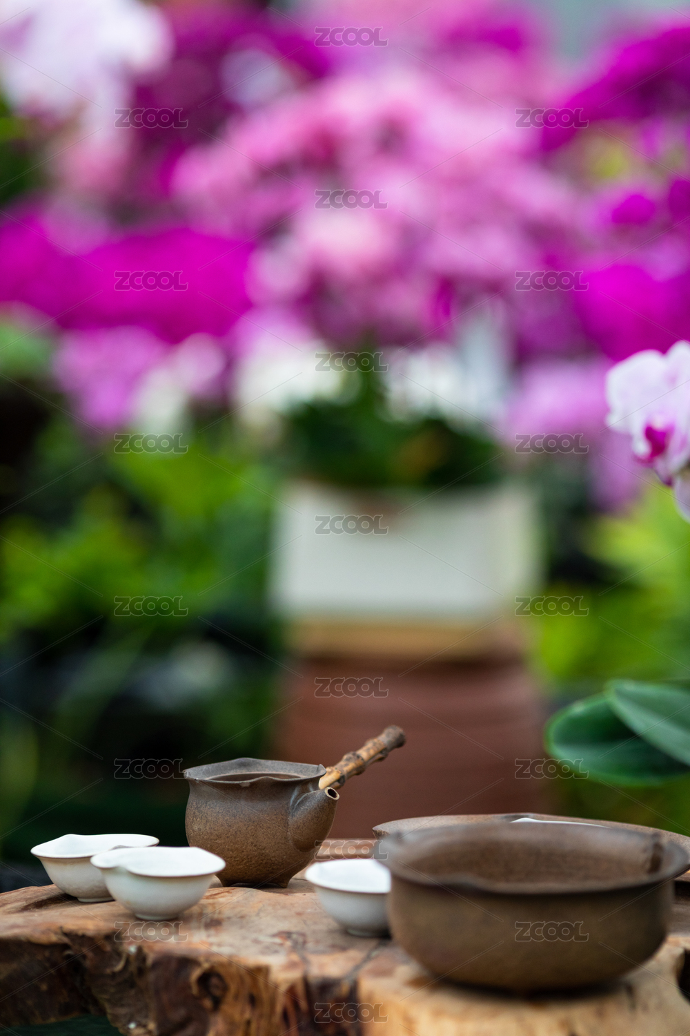 室内兰花兰草开花盆栽植物,中式家具传统文