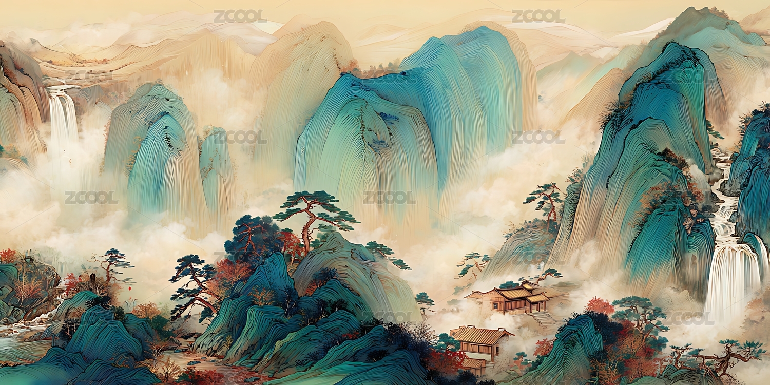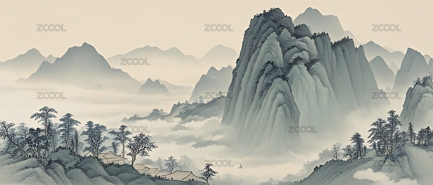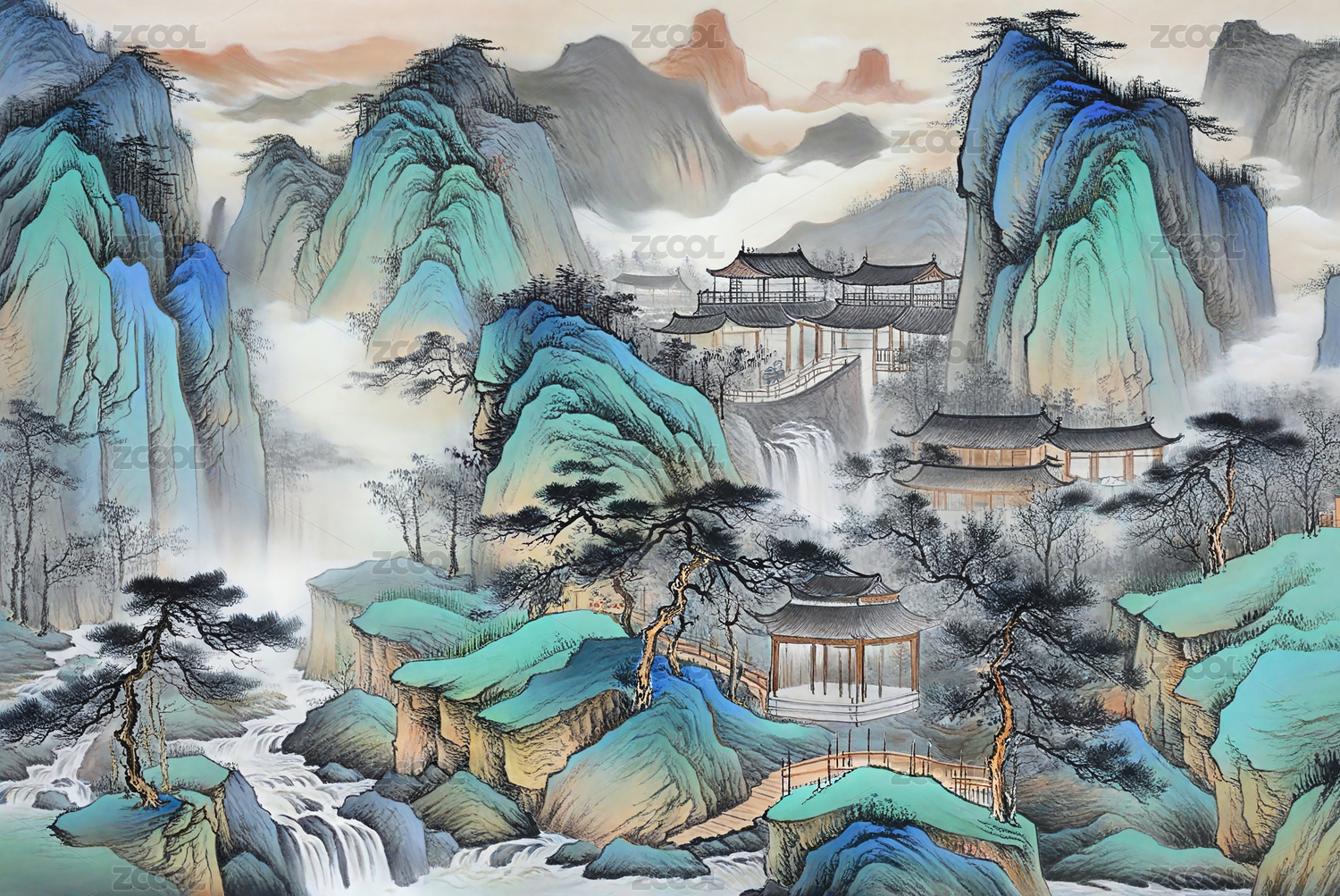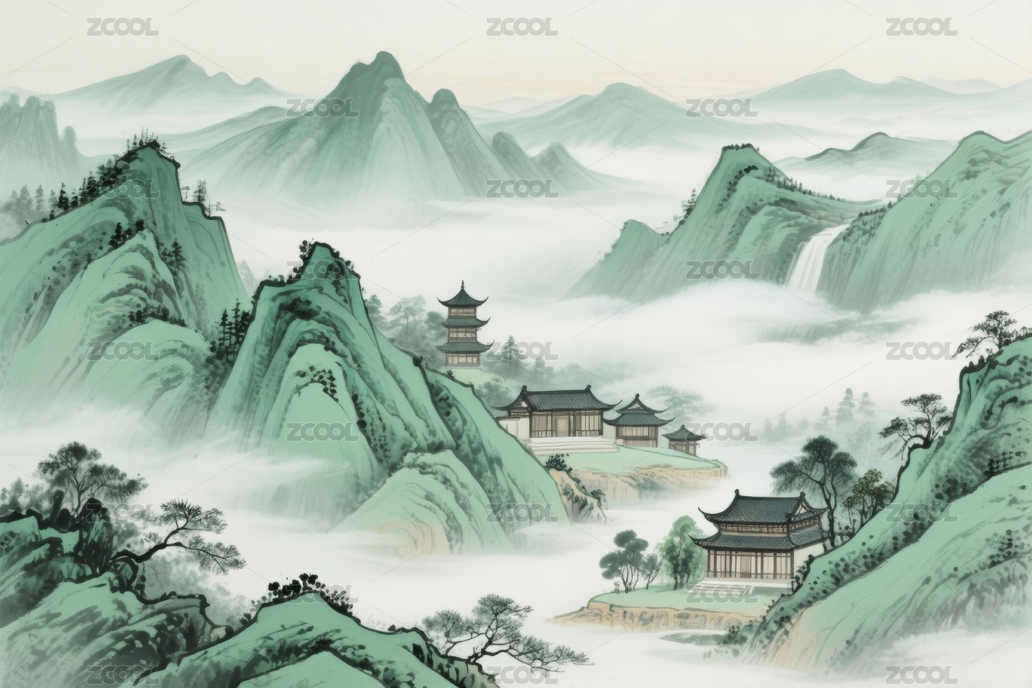 风景,自然美,高山,中国画,插画,国风,中国文化,水墨画,地形,绘画插图
