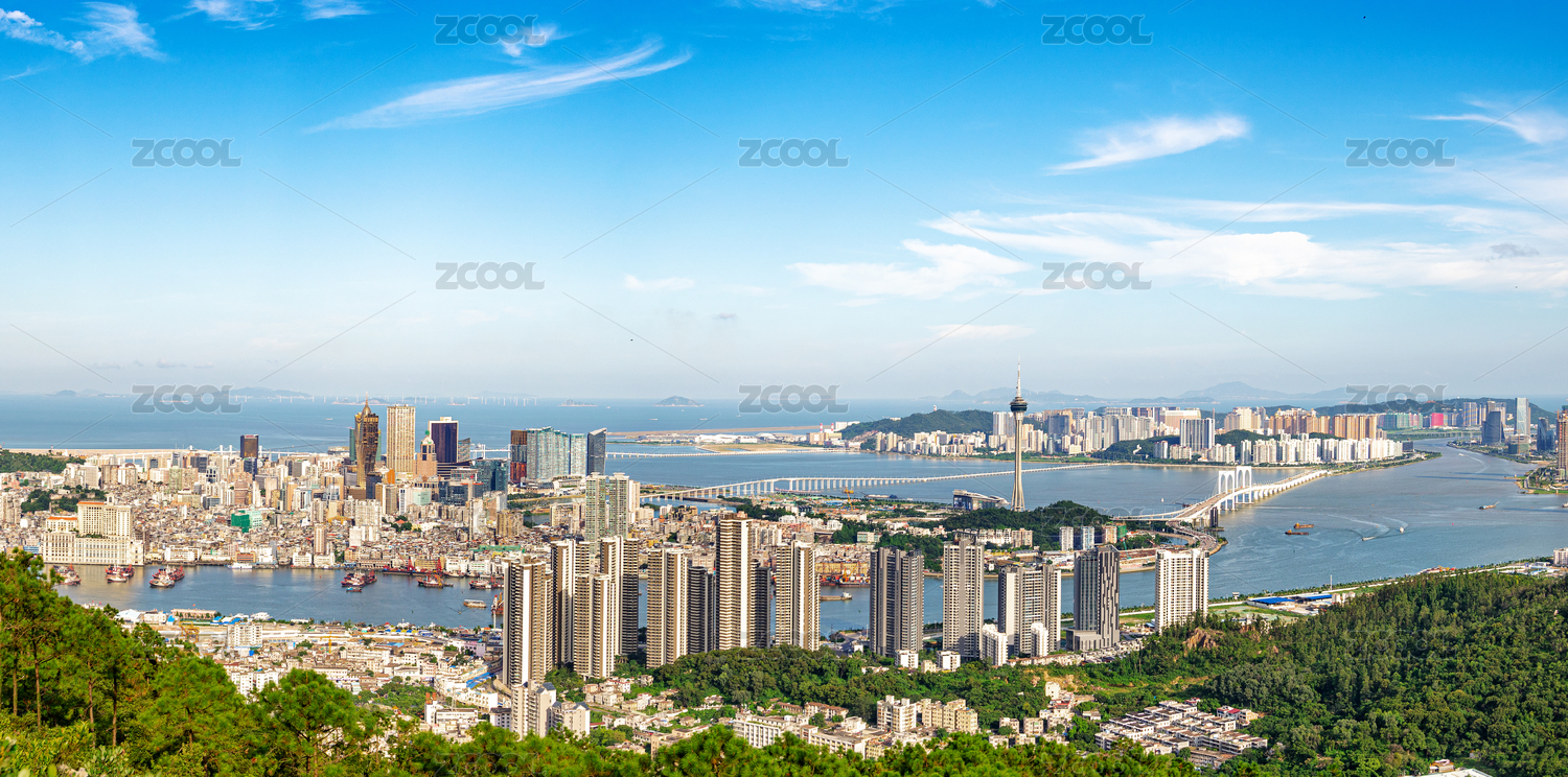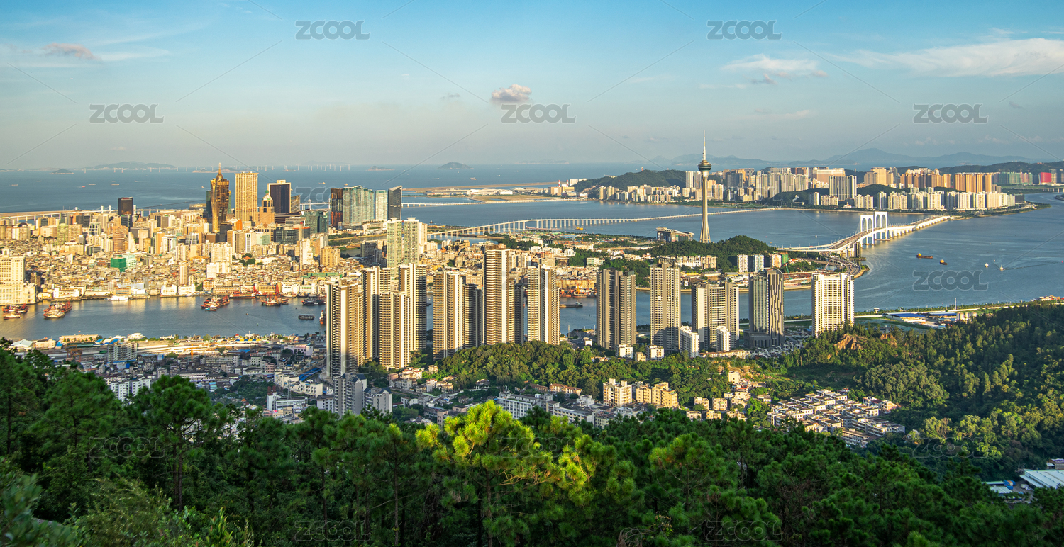 澳门,全景,城市,建筑,大海,黄昏,赌城,赌博,蓝天,云朵