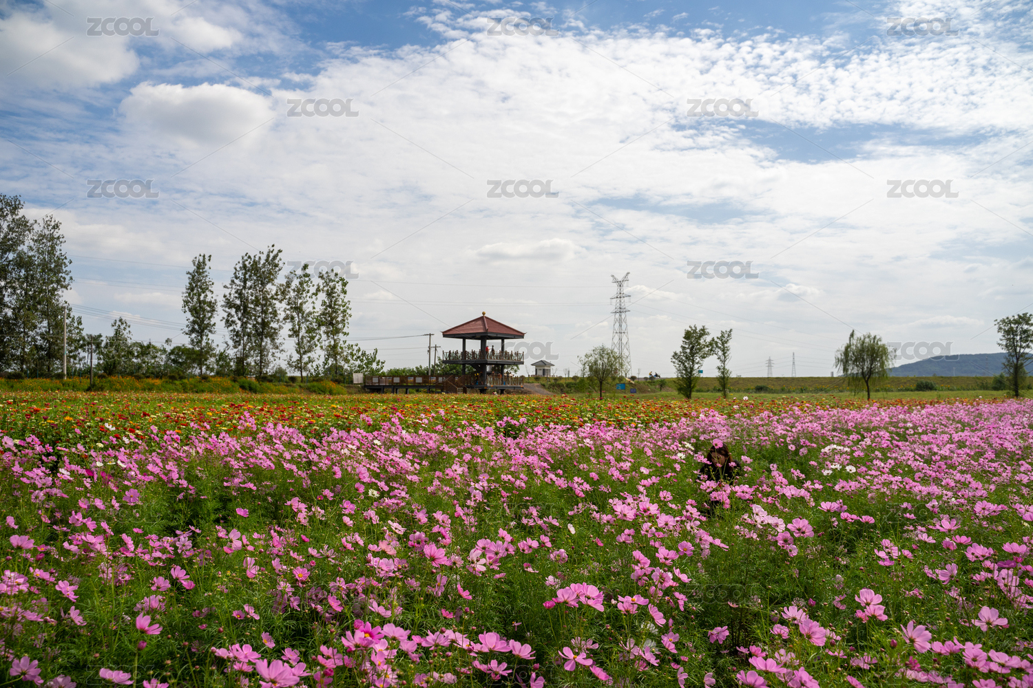 花,盛开,花海,花卉,公园,秋天,百日菊,色彩,鲜艳,天空