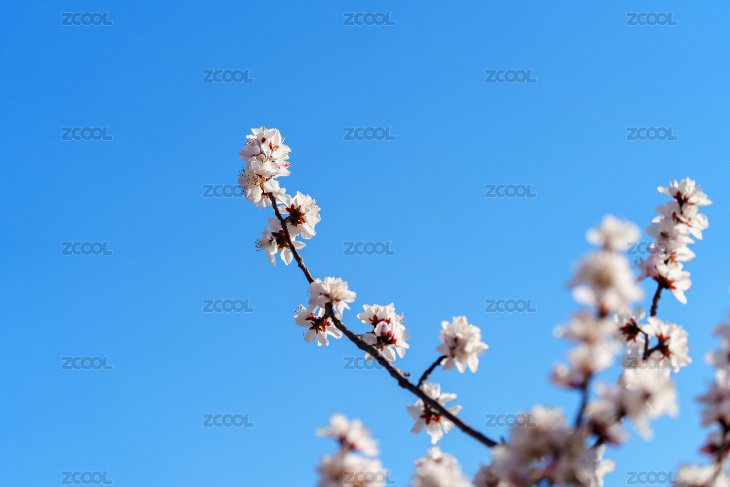 蓝天下阳光中盛开的的颐和园西堤桃花