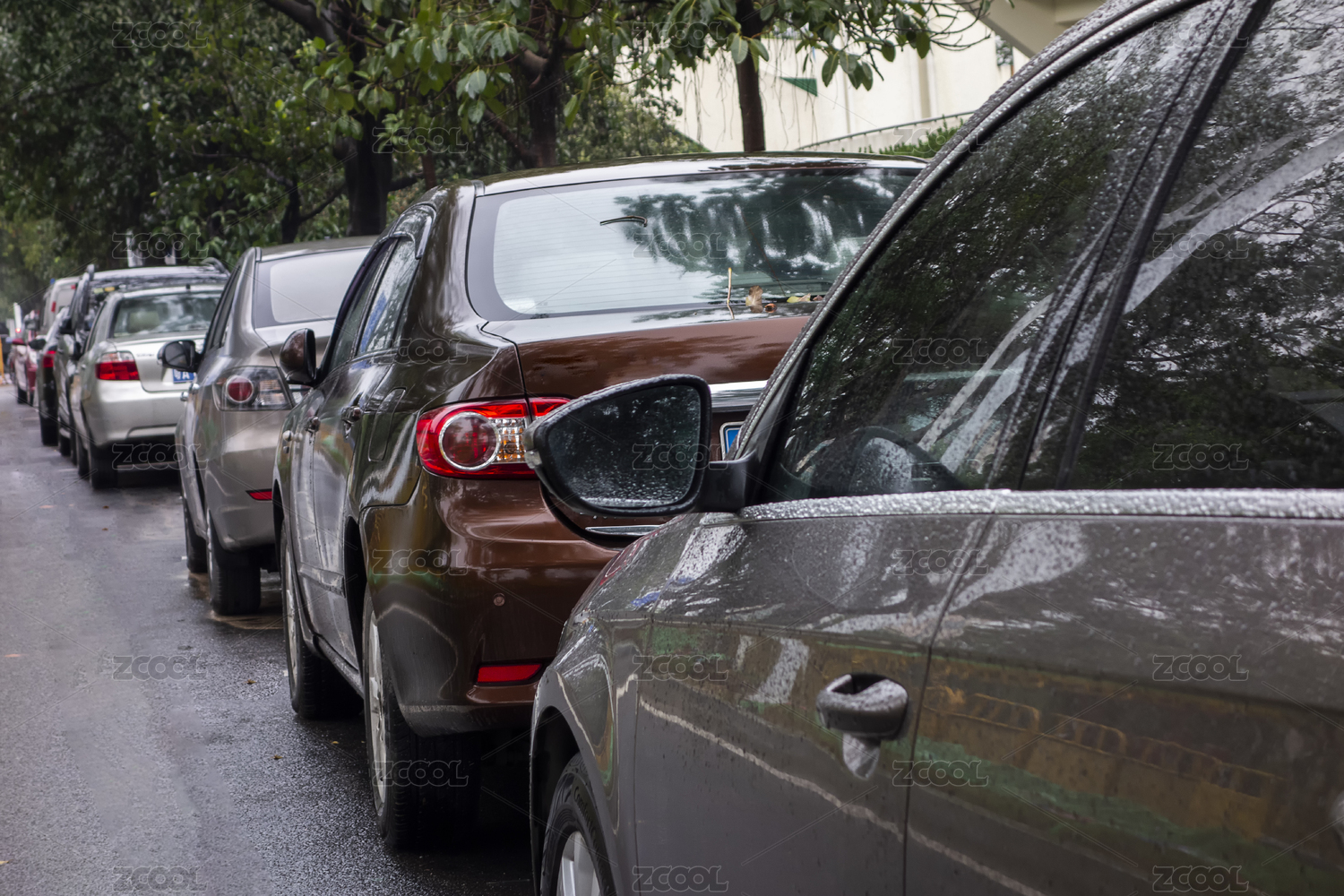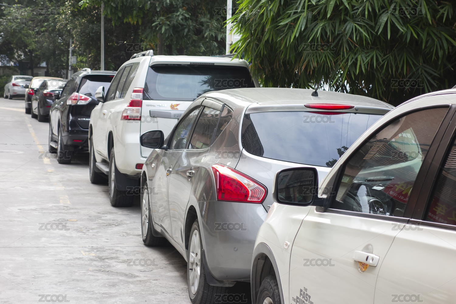 路边停放整齐的家用汽车