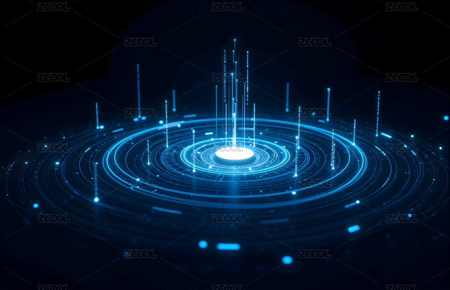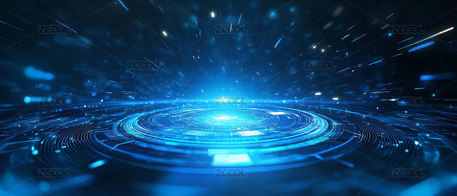 蓝色科技光环与光束的未来感场景
