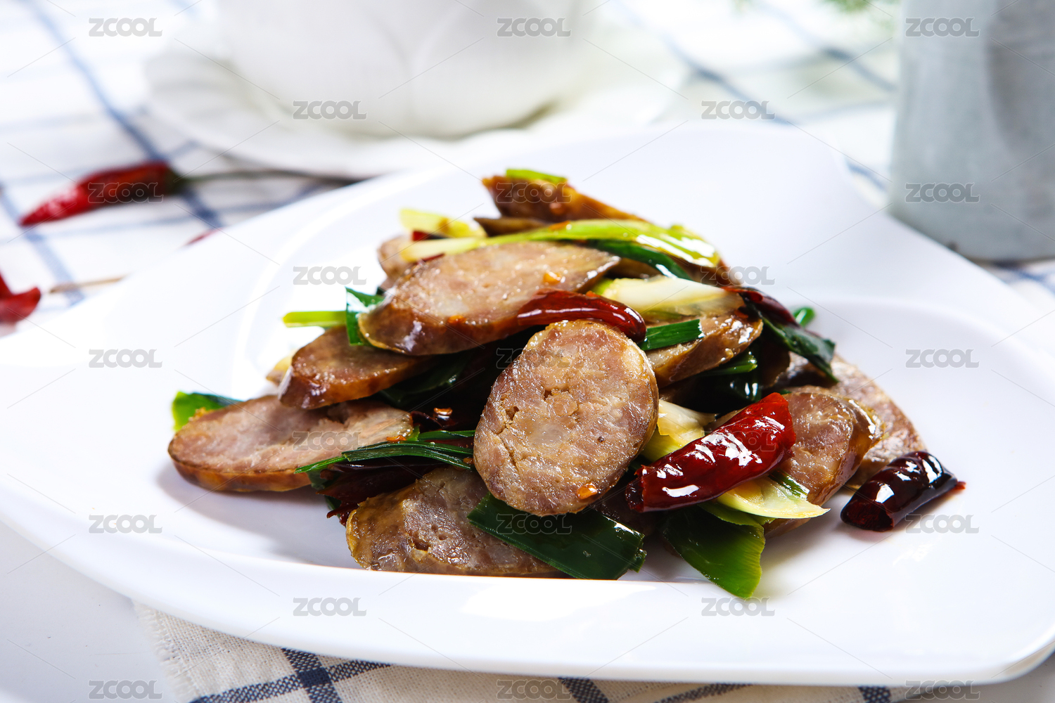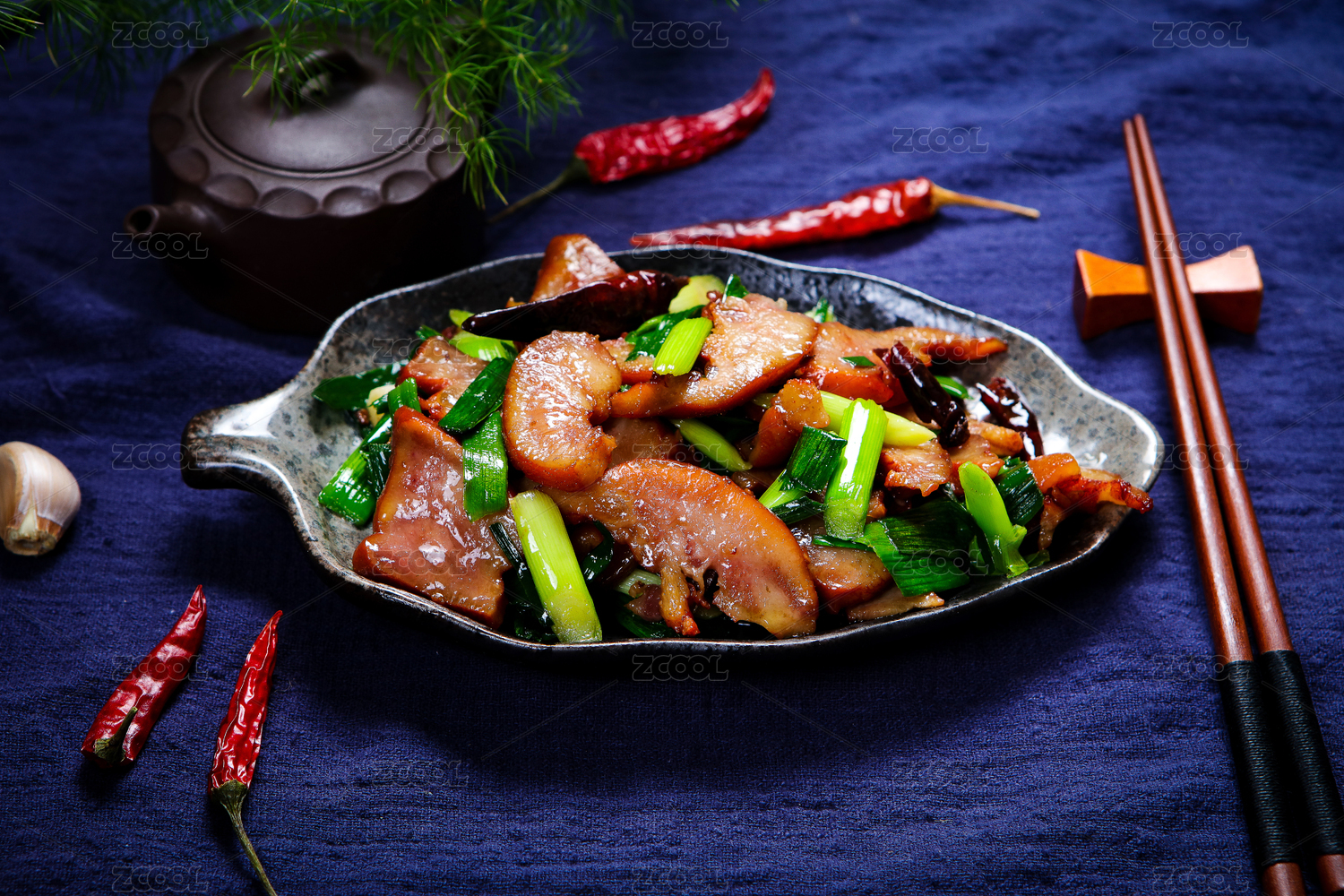美味菜肴蒜苗辣椒小炒卤猪头肉