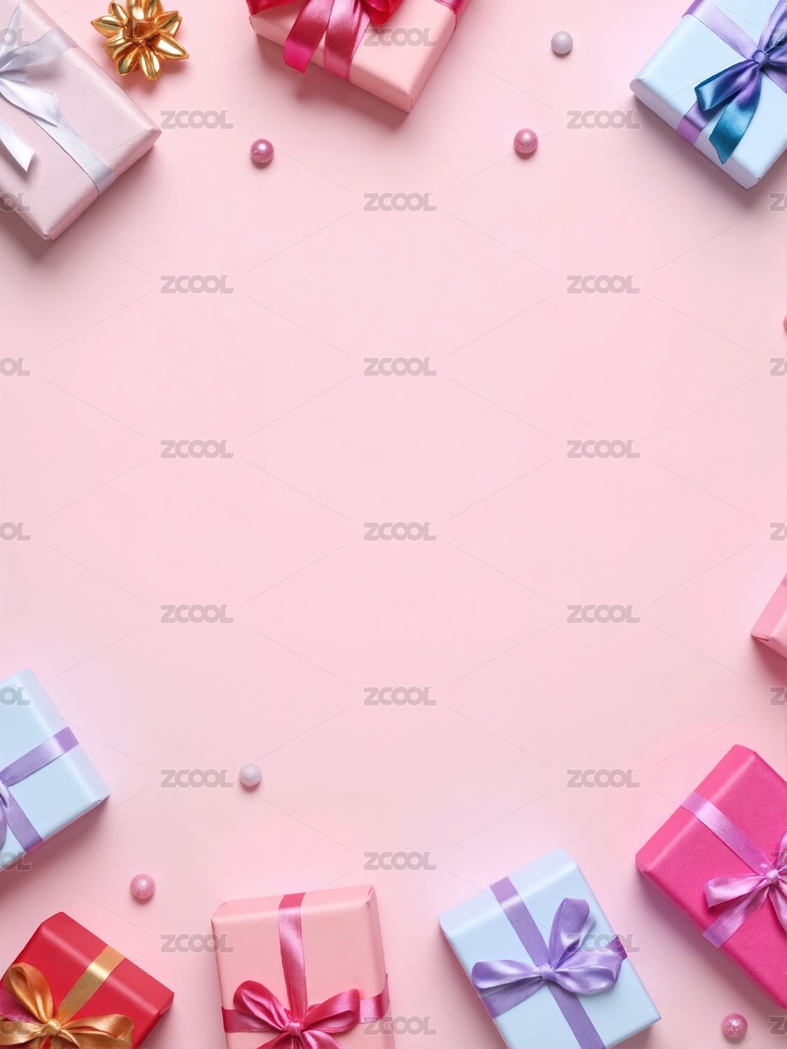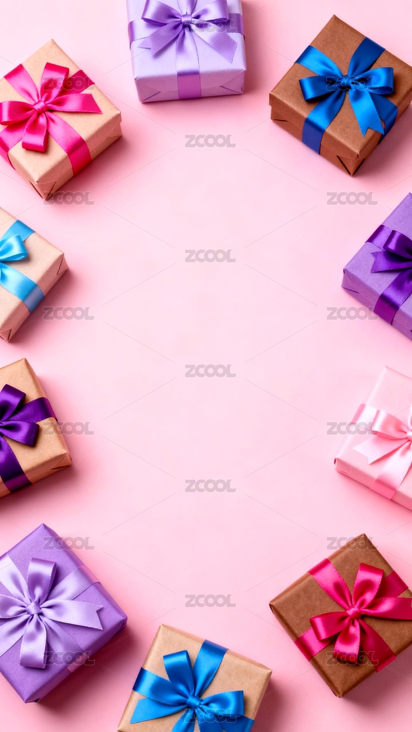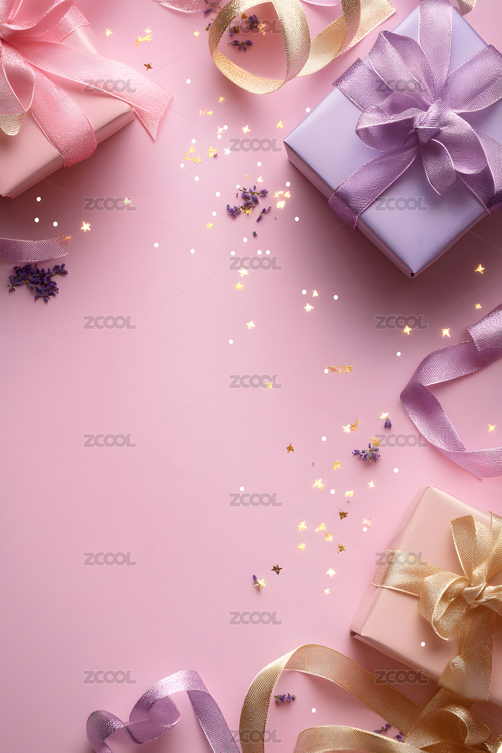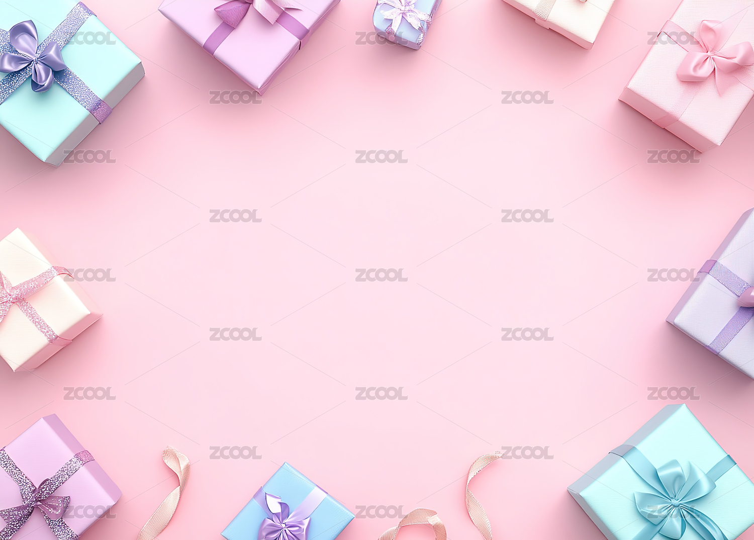粉红色背景上的礼品盒和礼品盒的高角度视图
