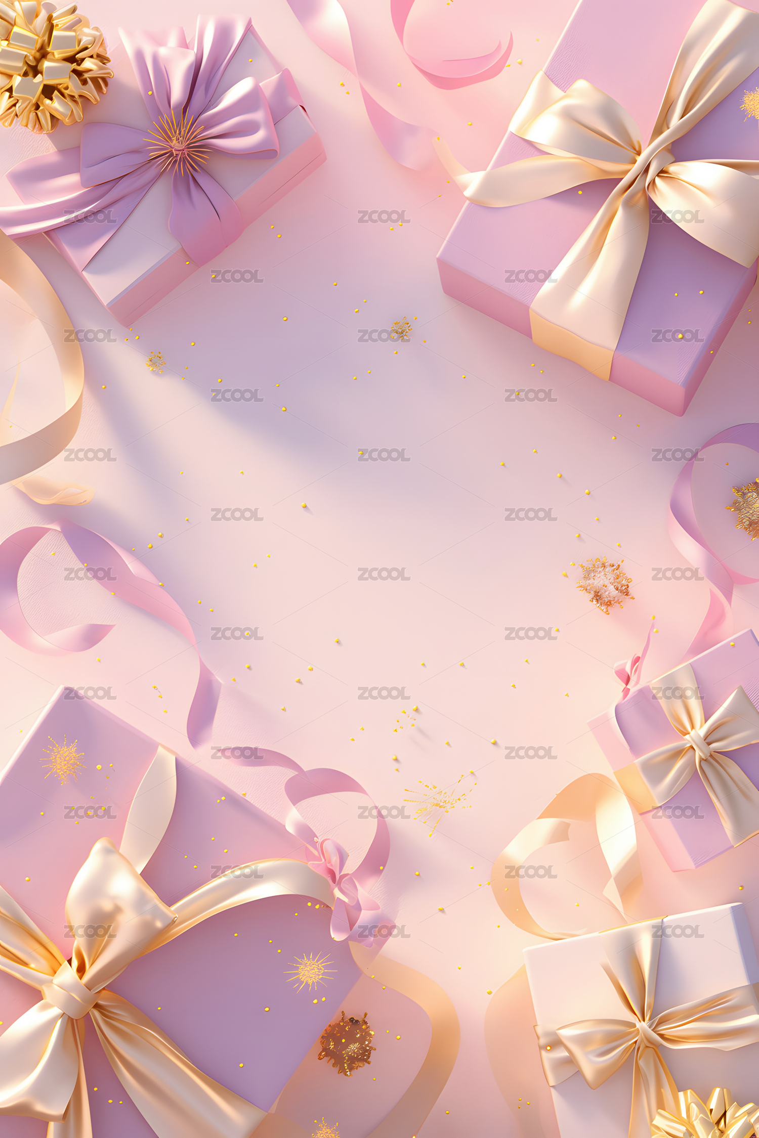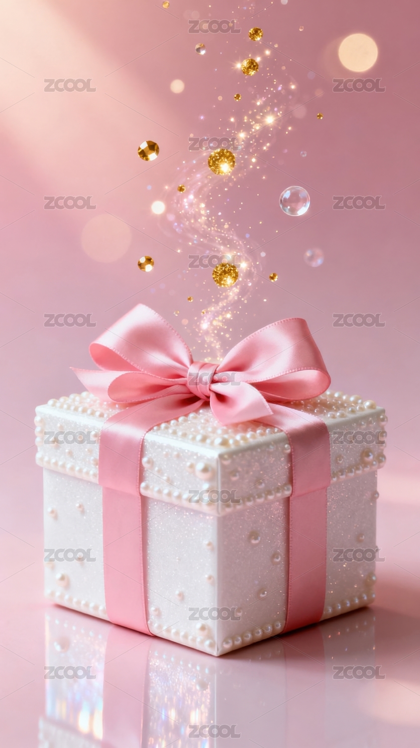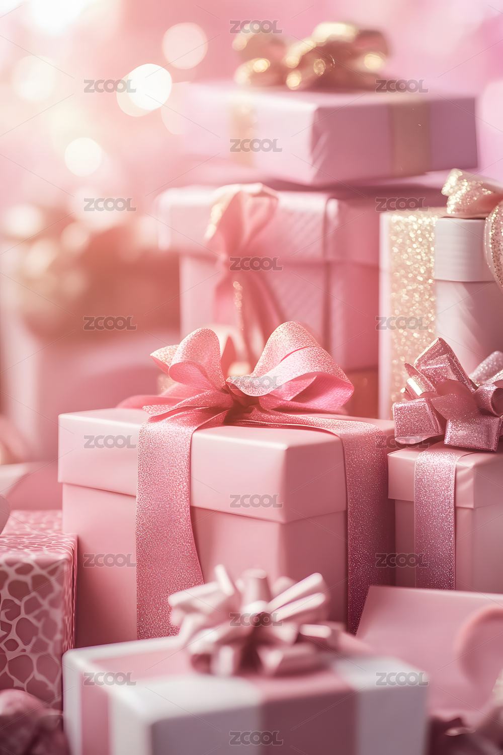 3D礼盒生日庆典,粉色和红色的优雅情人节