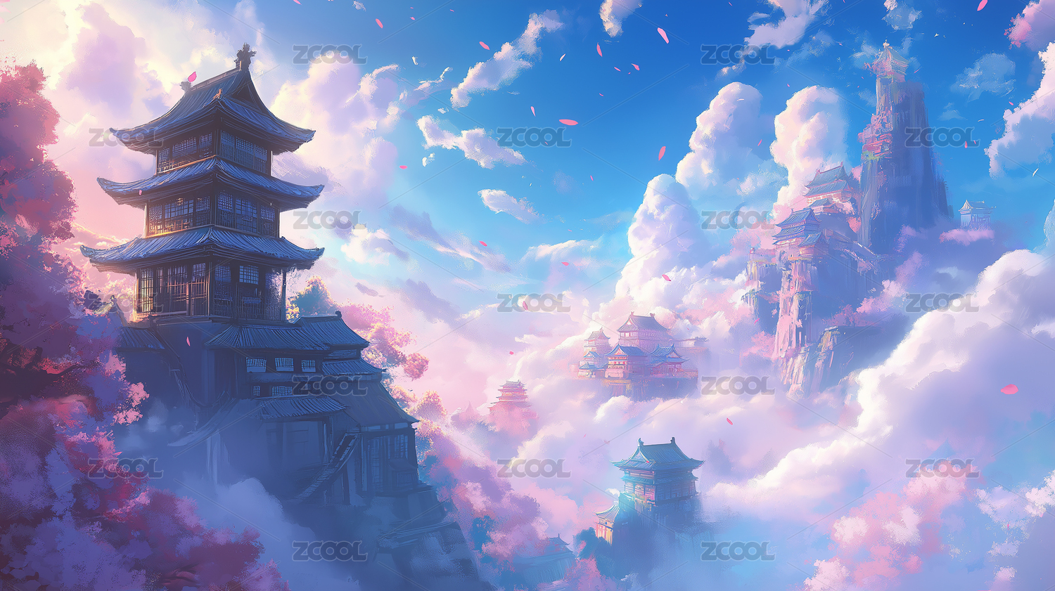 AIGC202407,古代建筑,云雾,山脉,空场景,壁纸,风景,山水,国风,3d