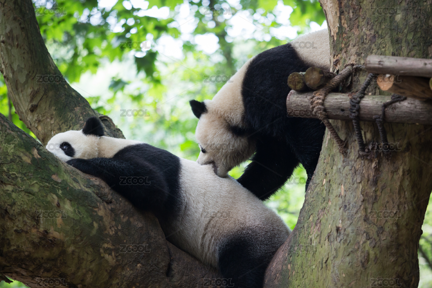 大熊猫繁育研究基地趴在树上睡觉的大熊猫