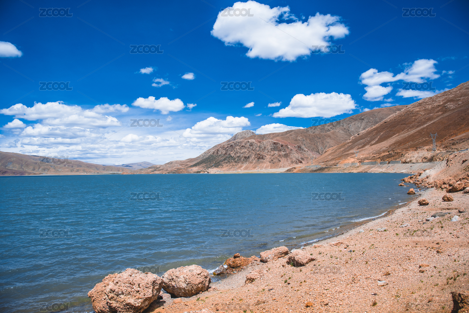中国青藏高原美丽的蓝色湖泊与蓝天