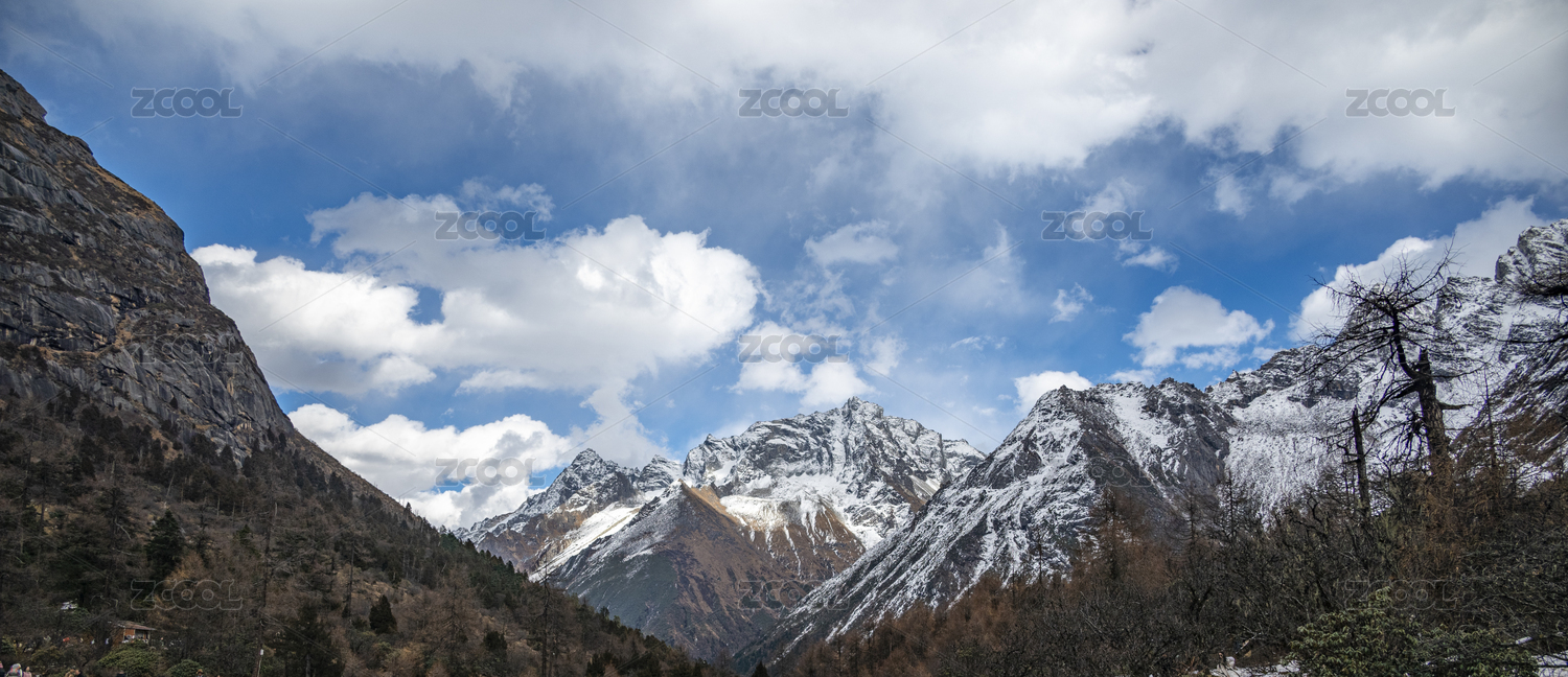 中国川西毕棚沟初冬晴天的雪山