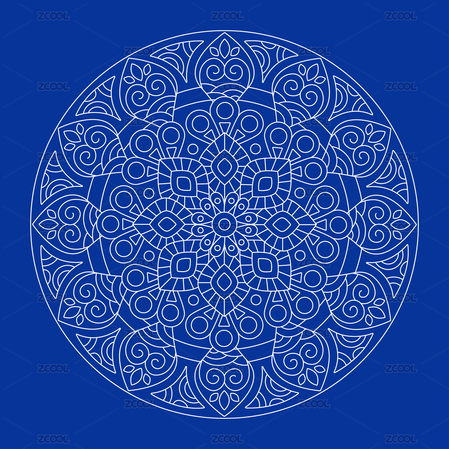 中国传统的中式线条圆形装饰花纹图案,蓝色背景