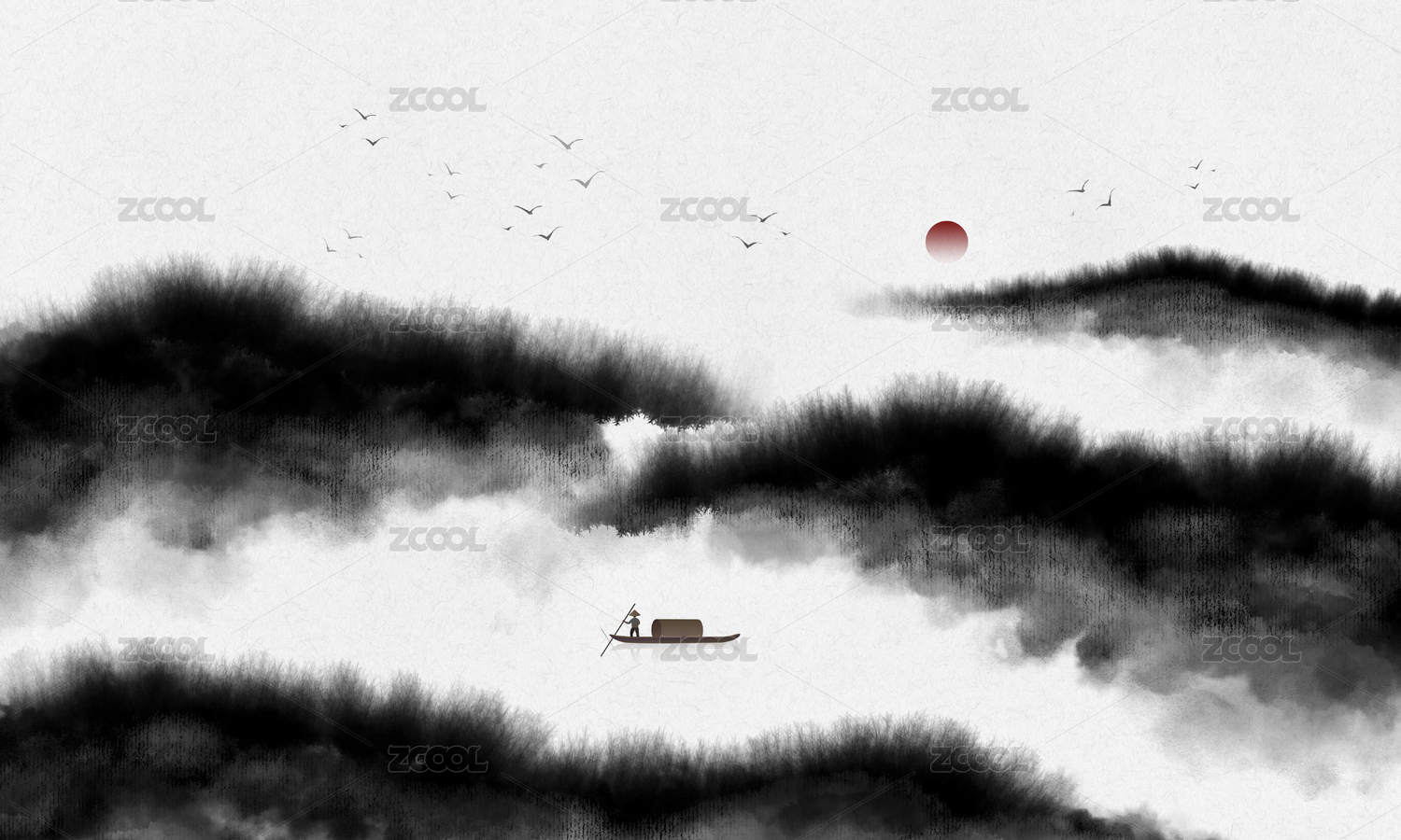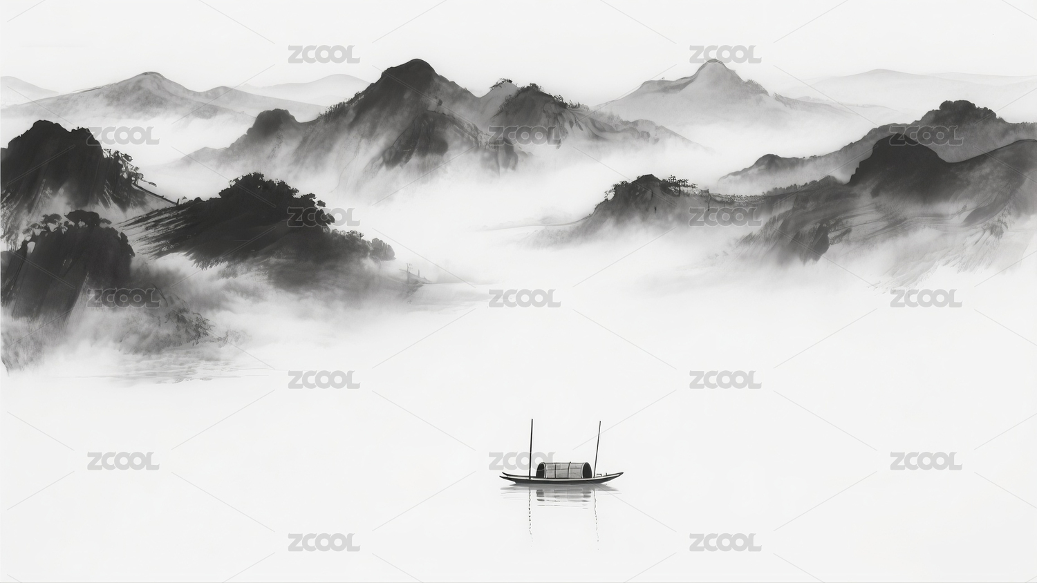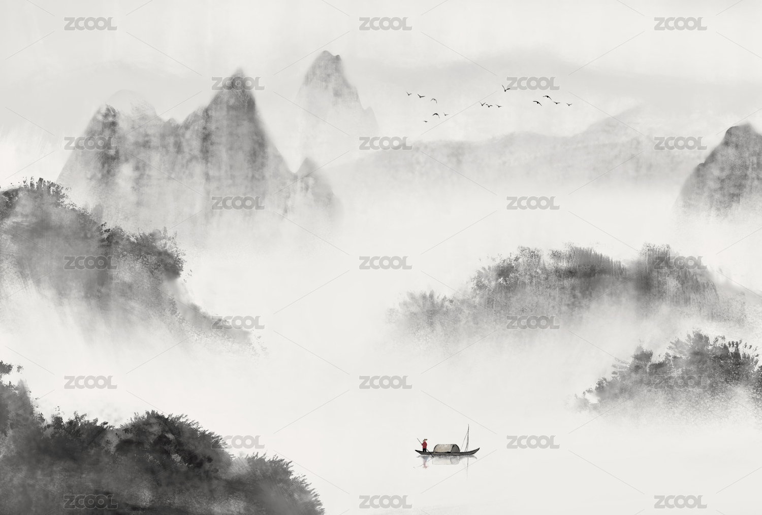 手绘中国风意境水墨山水 淡雅水墨山水背景画