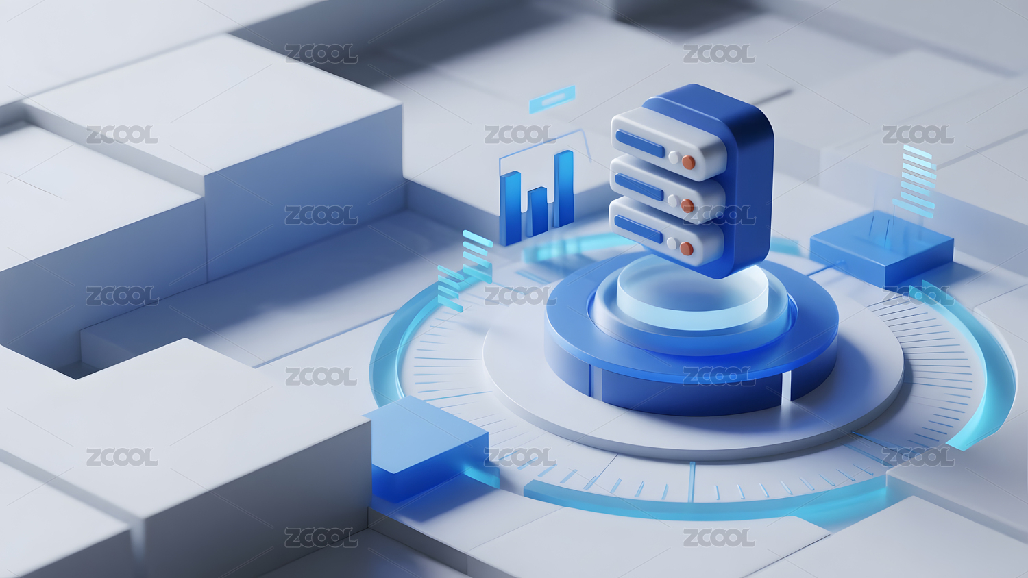 蓝色3D等距科技感插画