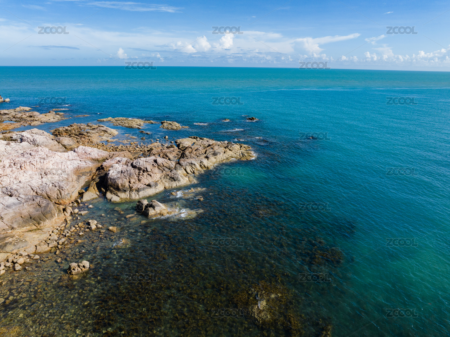 白天晴天蓝天白云下的斐济海岛海边沙滩