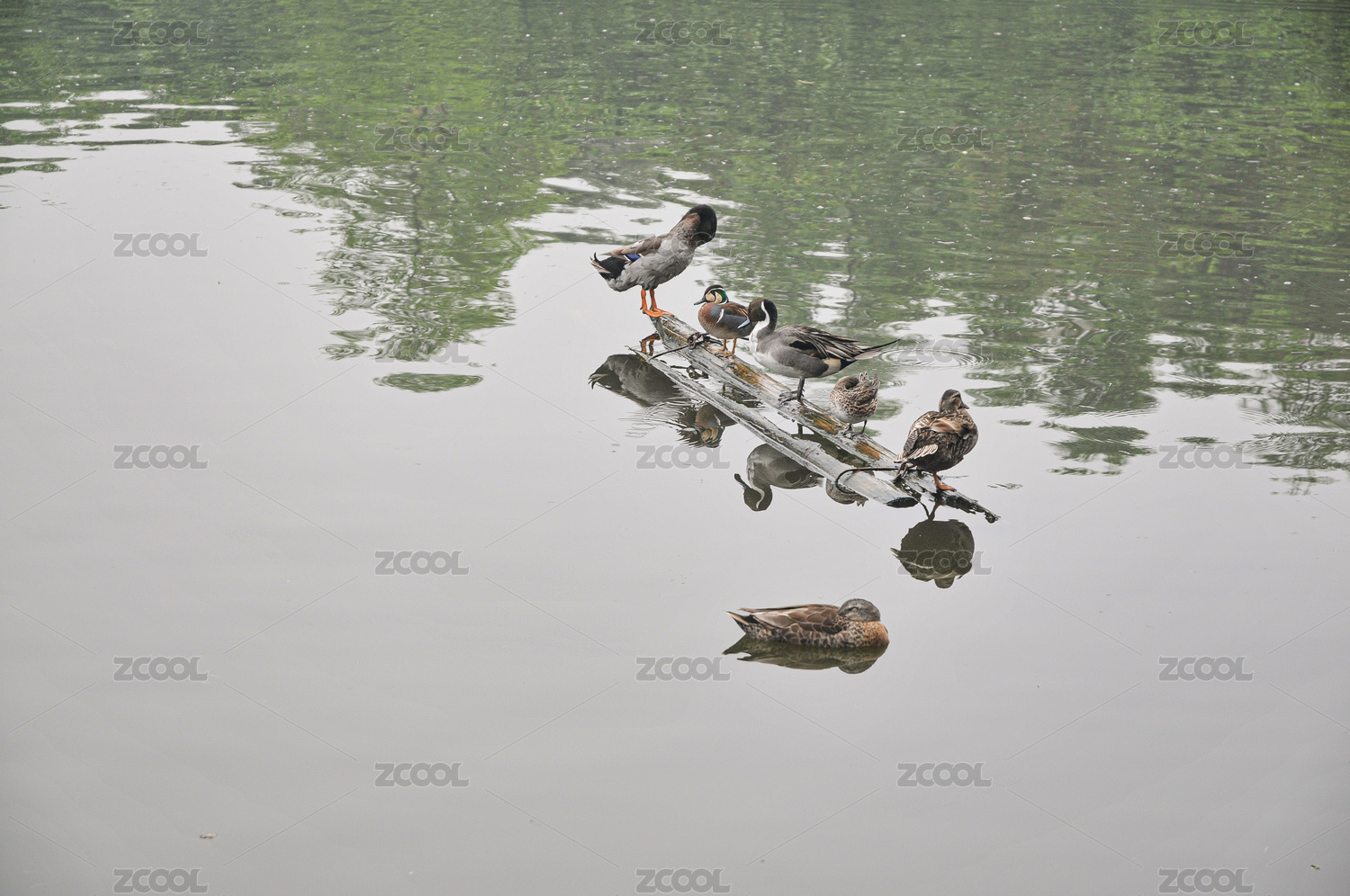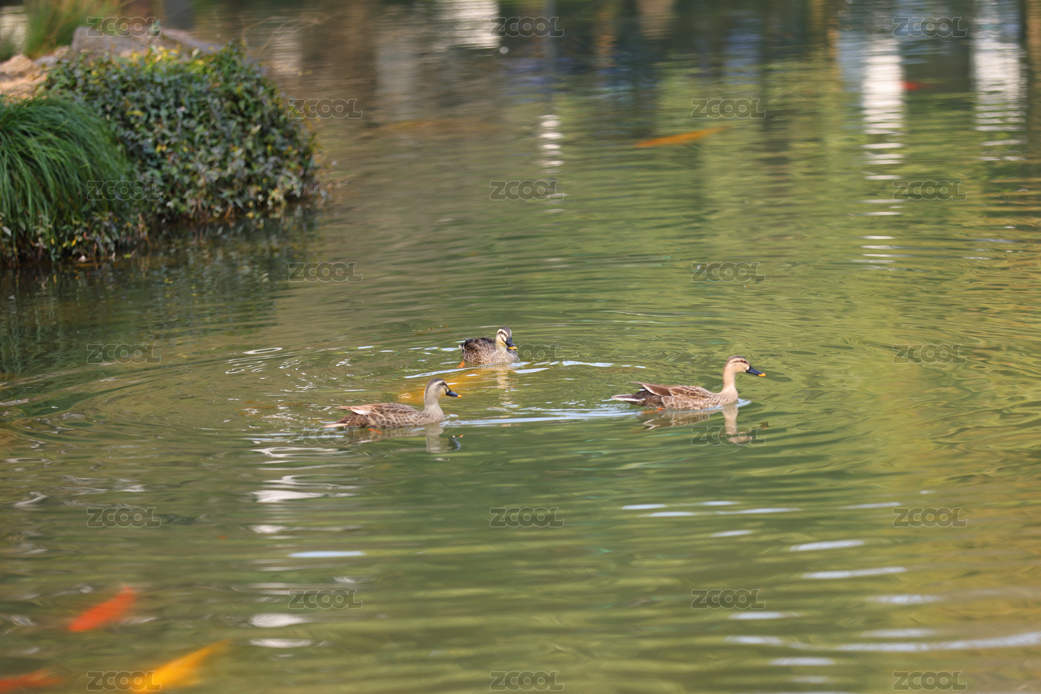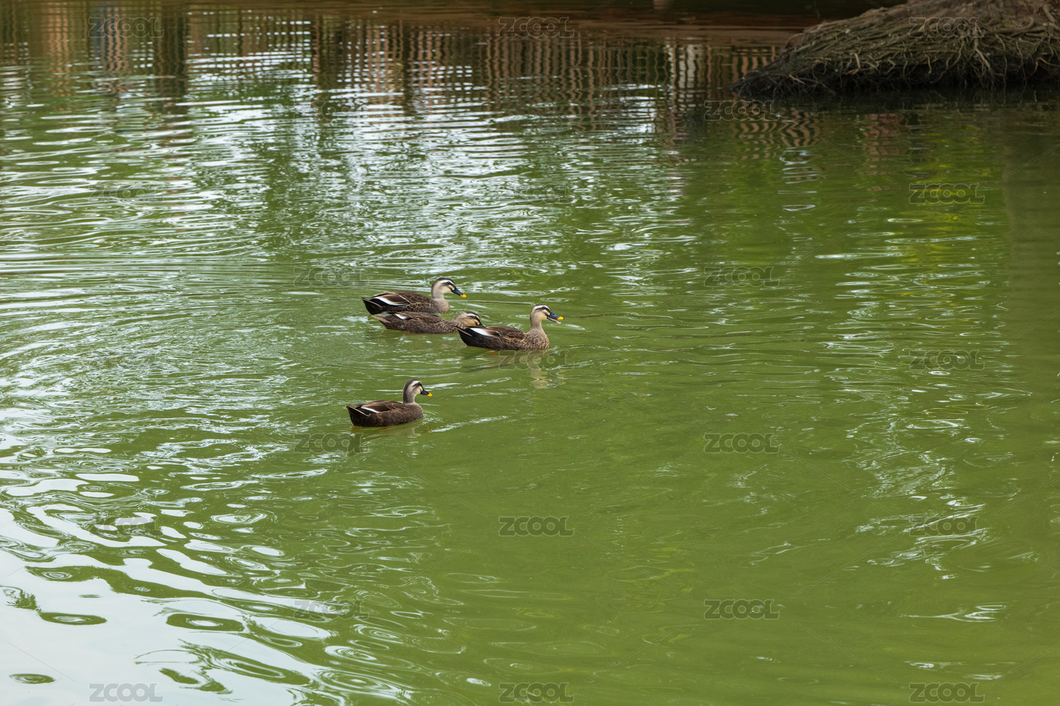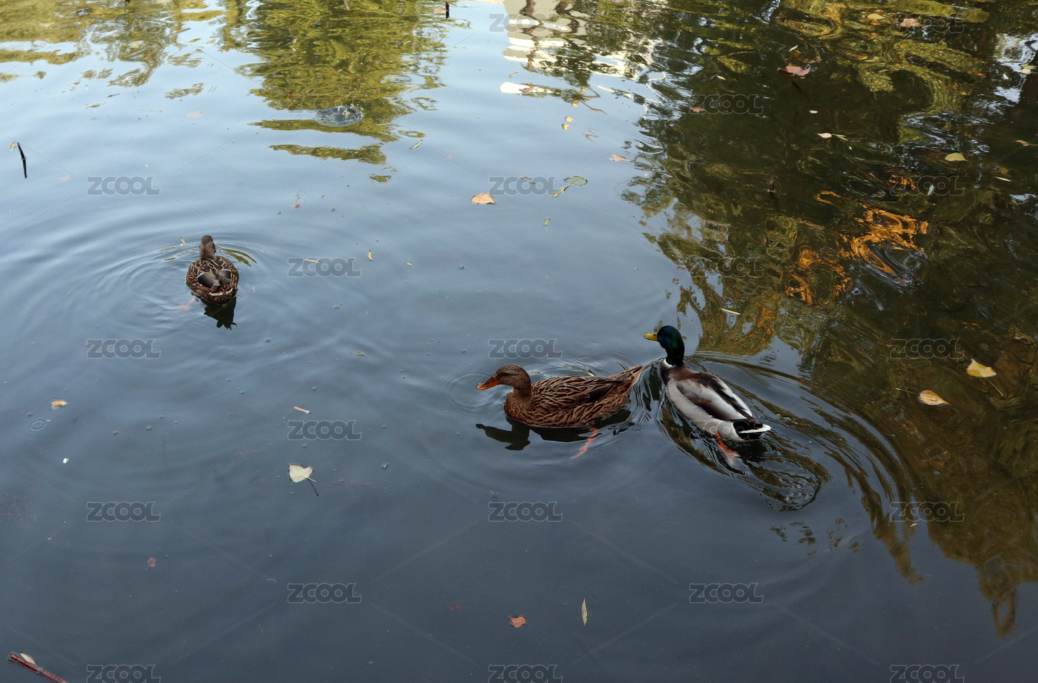 深秋在北京紫竹院湖中畅游的绿头鸭斑嘴鸭