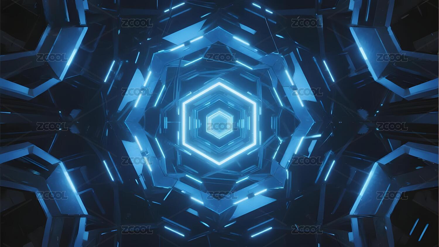 蓝色霓虹六边形隧道