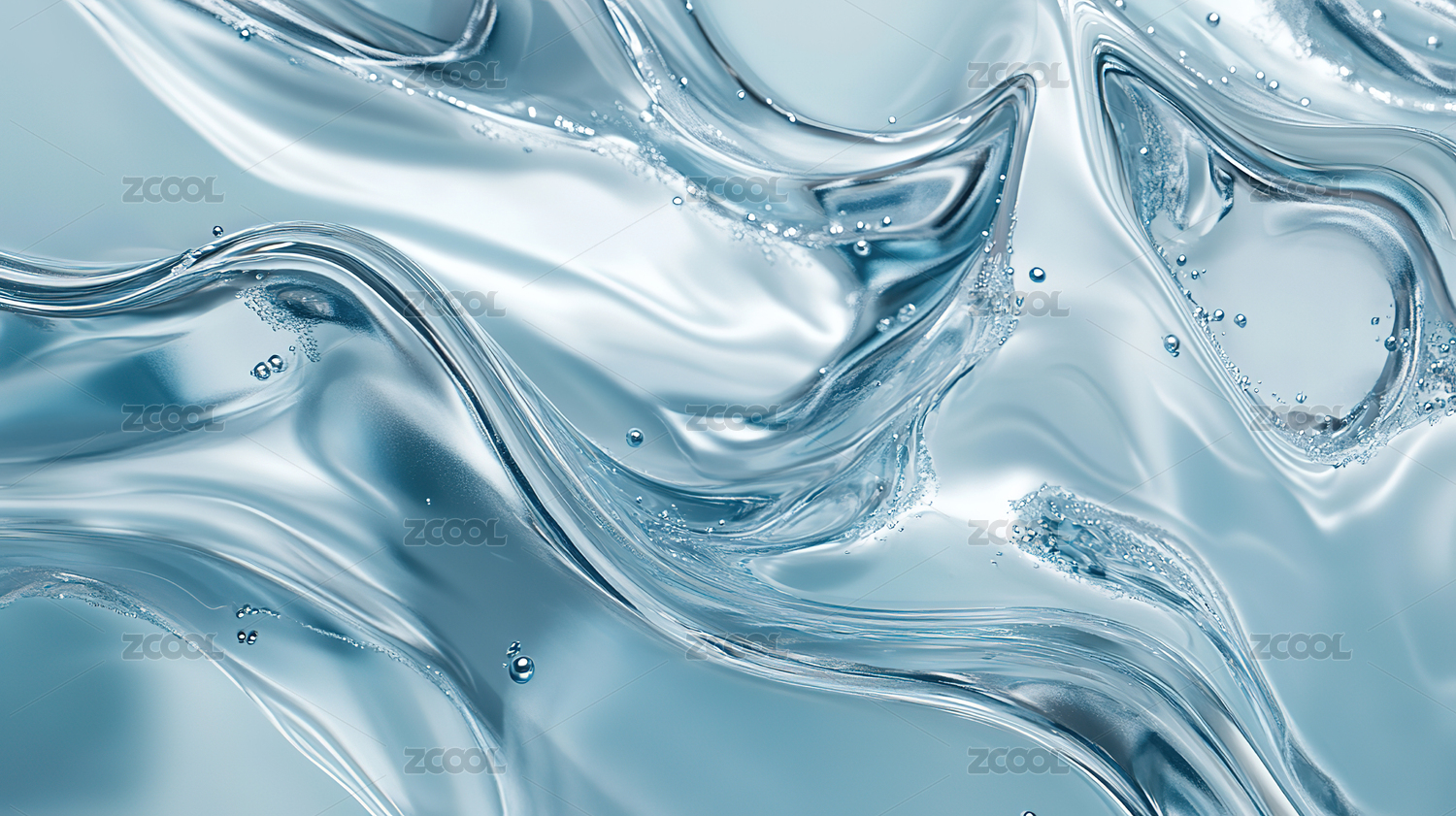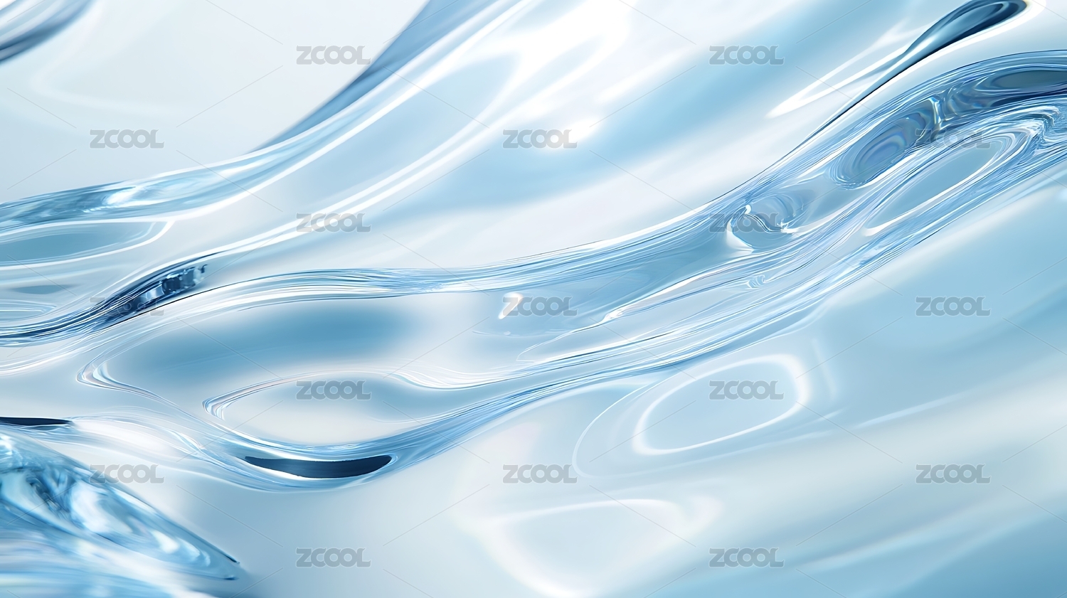 晶莹反射光影起伏波浪流淌透明液体3d插画