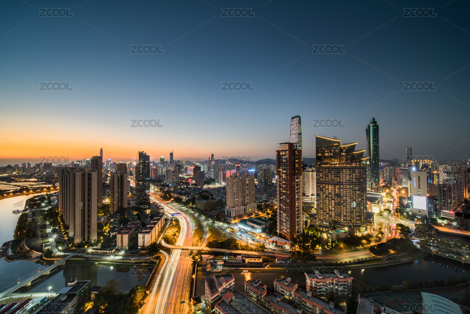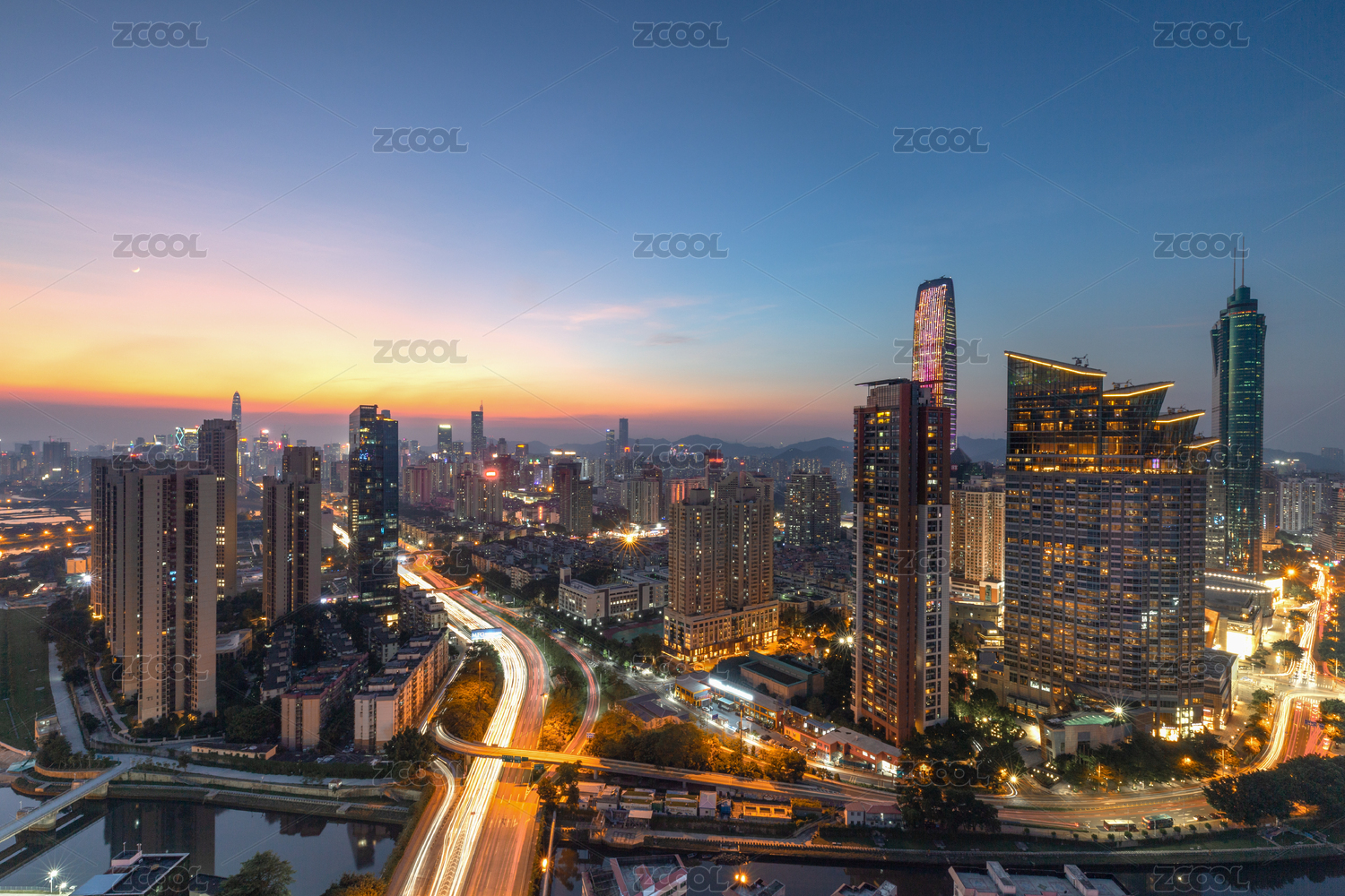 日落傍晚的深圳罗湖福田市区夜景晚霞