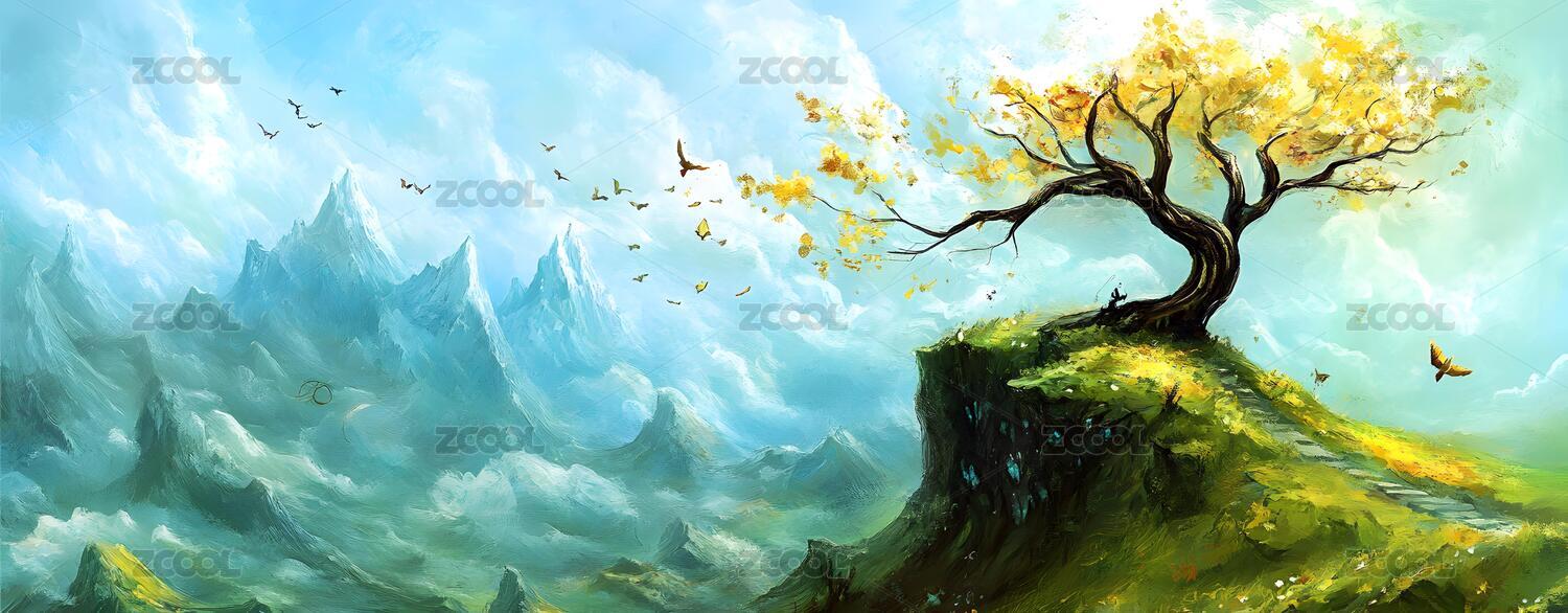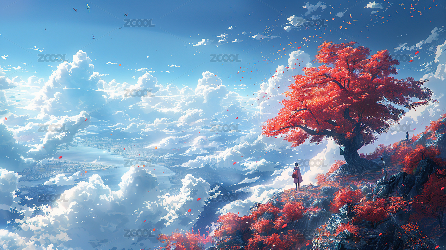 孤树,旋风,风景画,自然,秋天,红叶,梦幻,天空,美丽