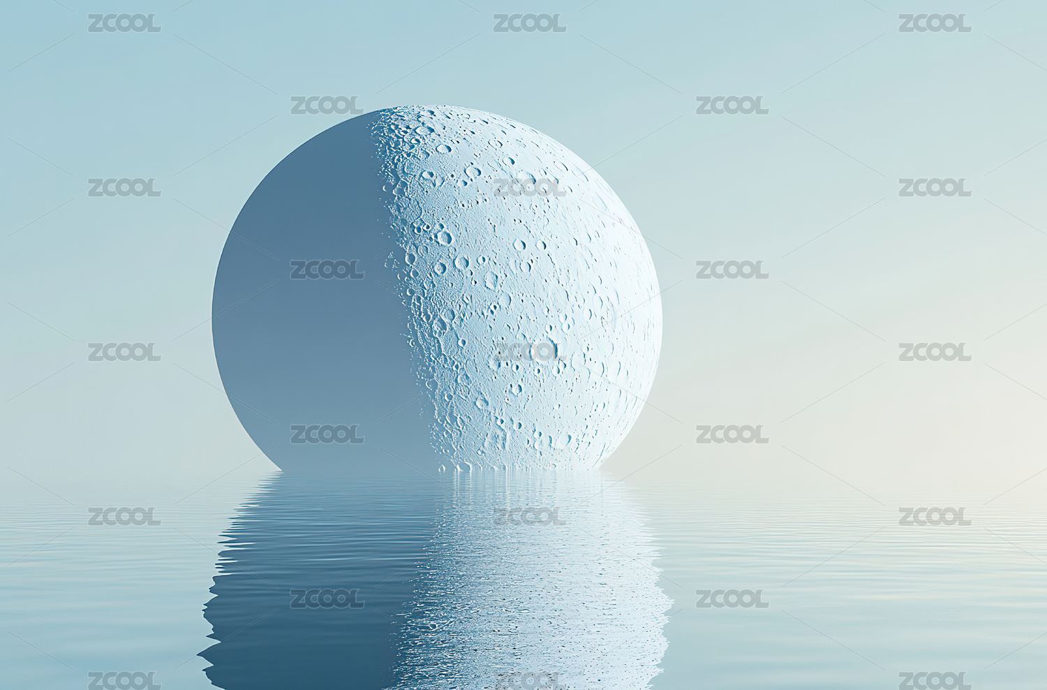 平静水面上的蓝色球体