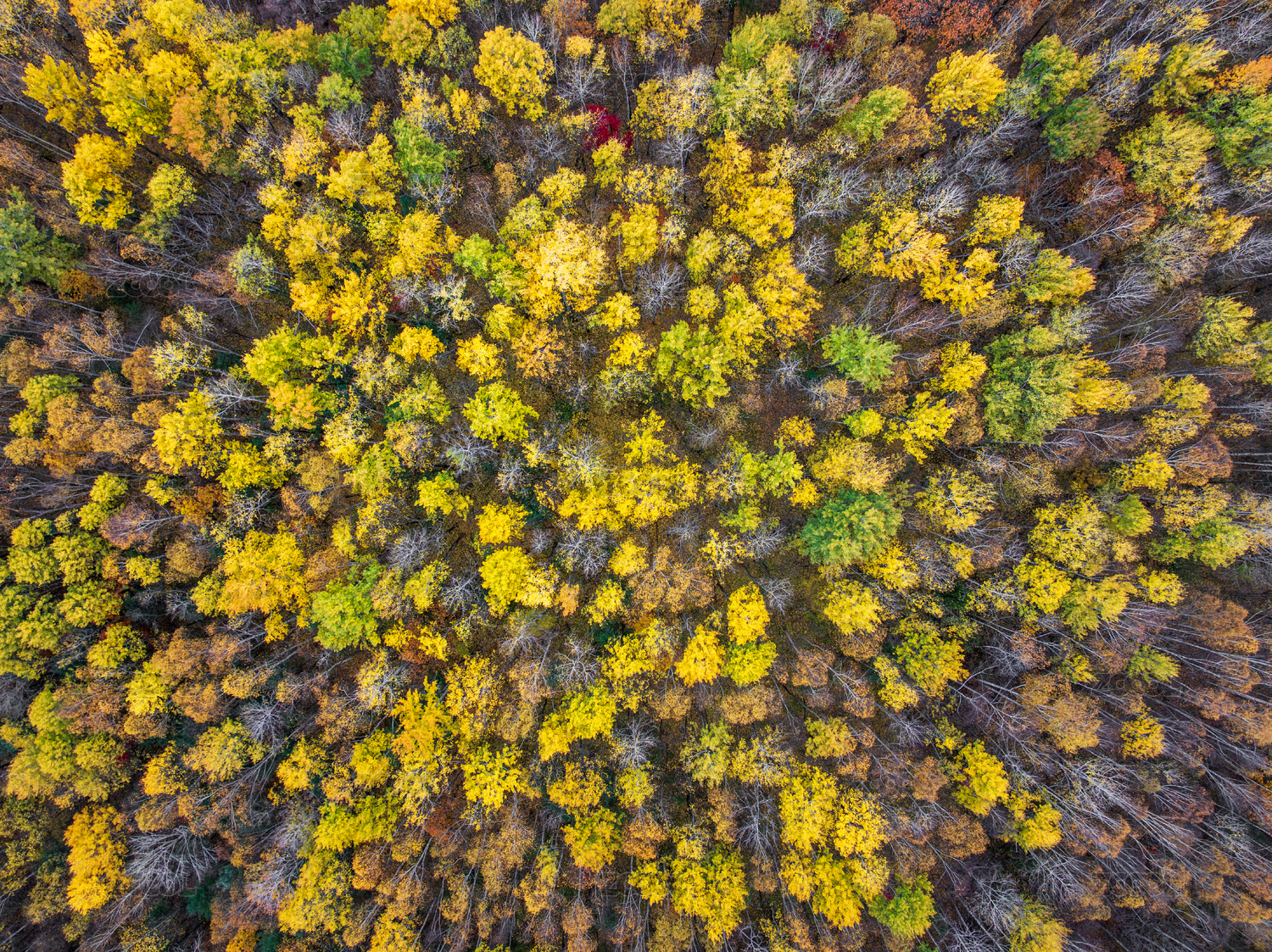 秋季,秋景,自然风光,秋天,松树,落叶松,五花山,航拍,俯瞰视角,风景