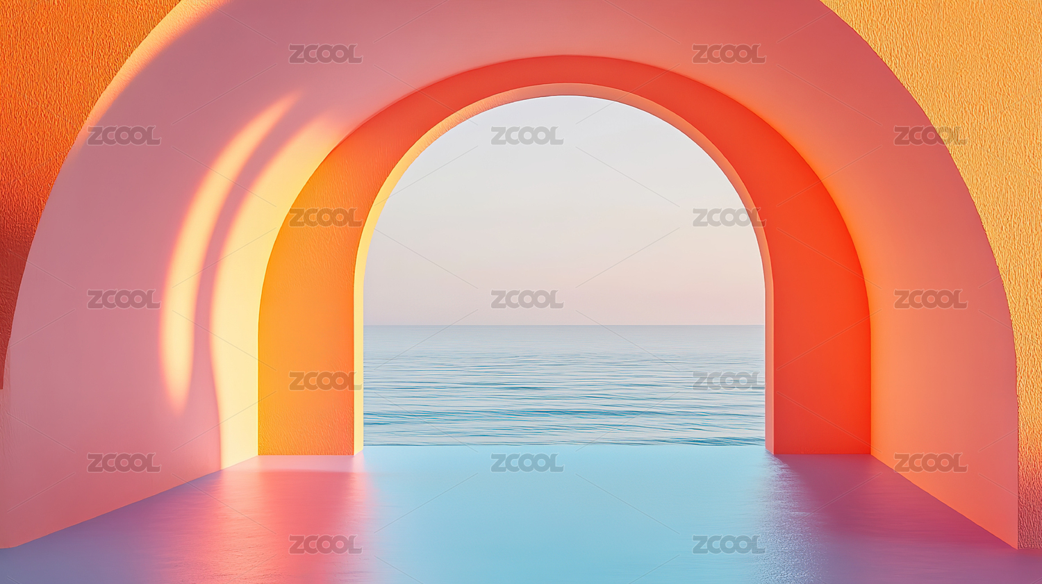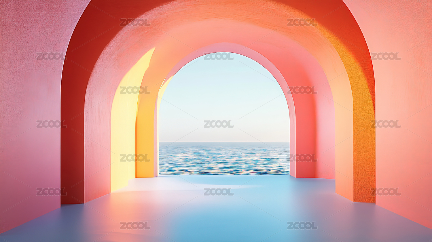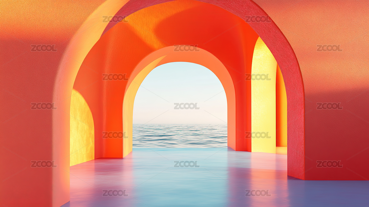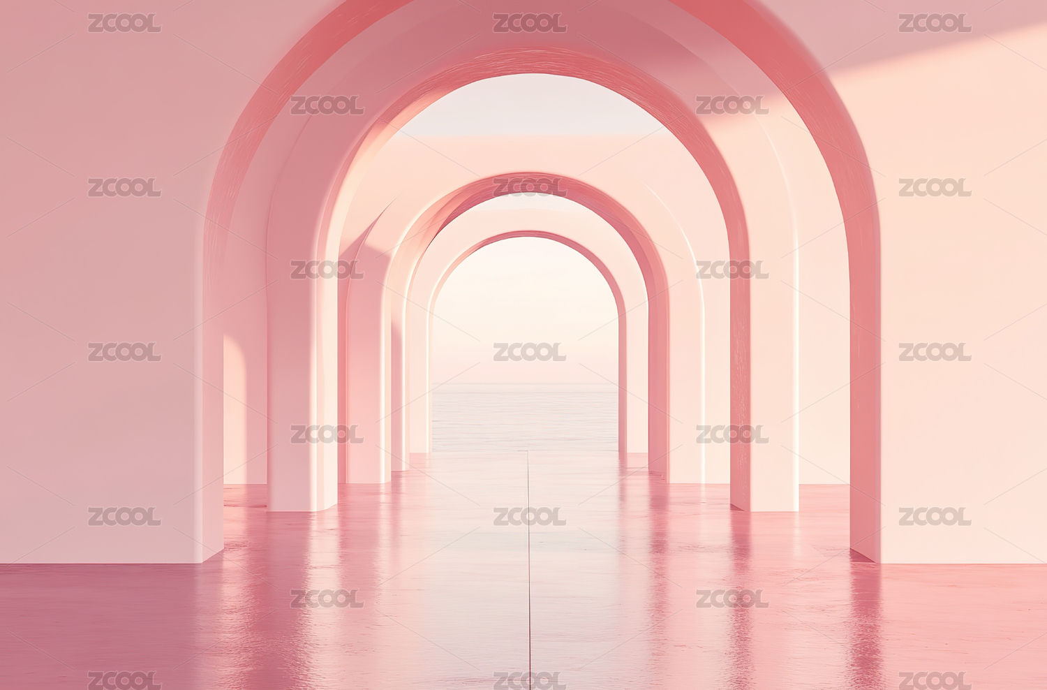 建筑,走廊,三维图形,现代,留白,光,拱门,未来,创造力,设计