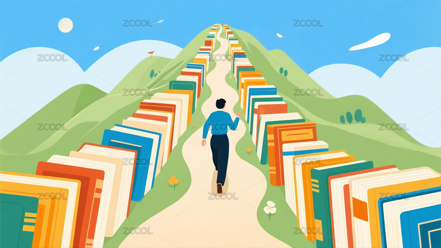 插画,潮流,渐变,奔跑,书本,叶子,教育,教培,少年