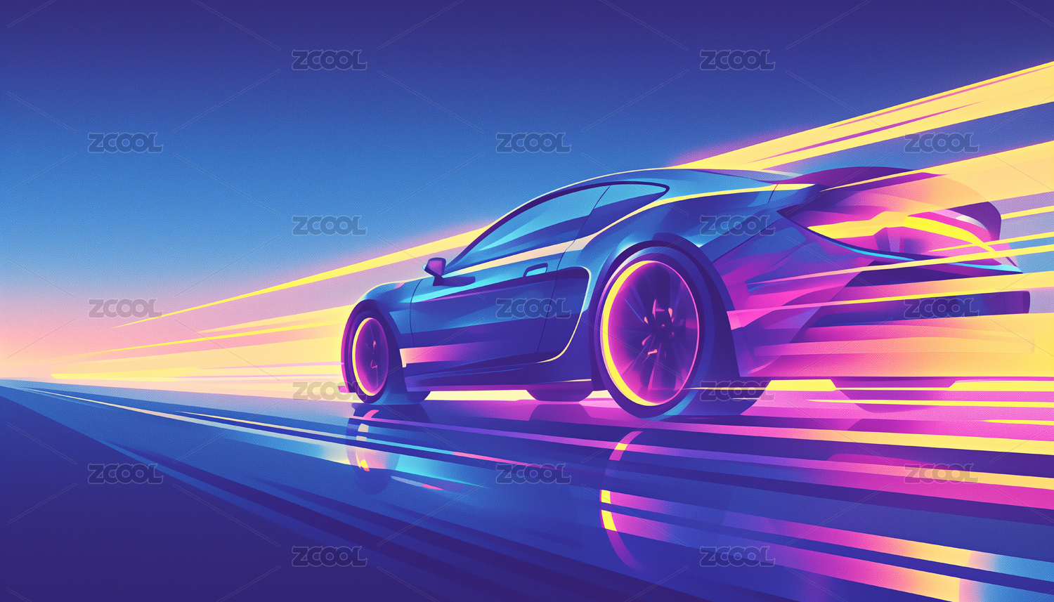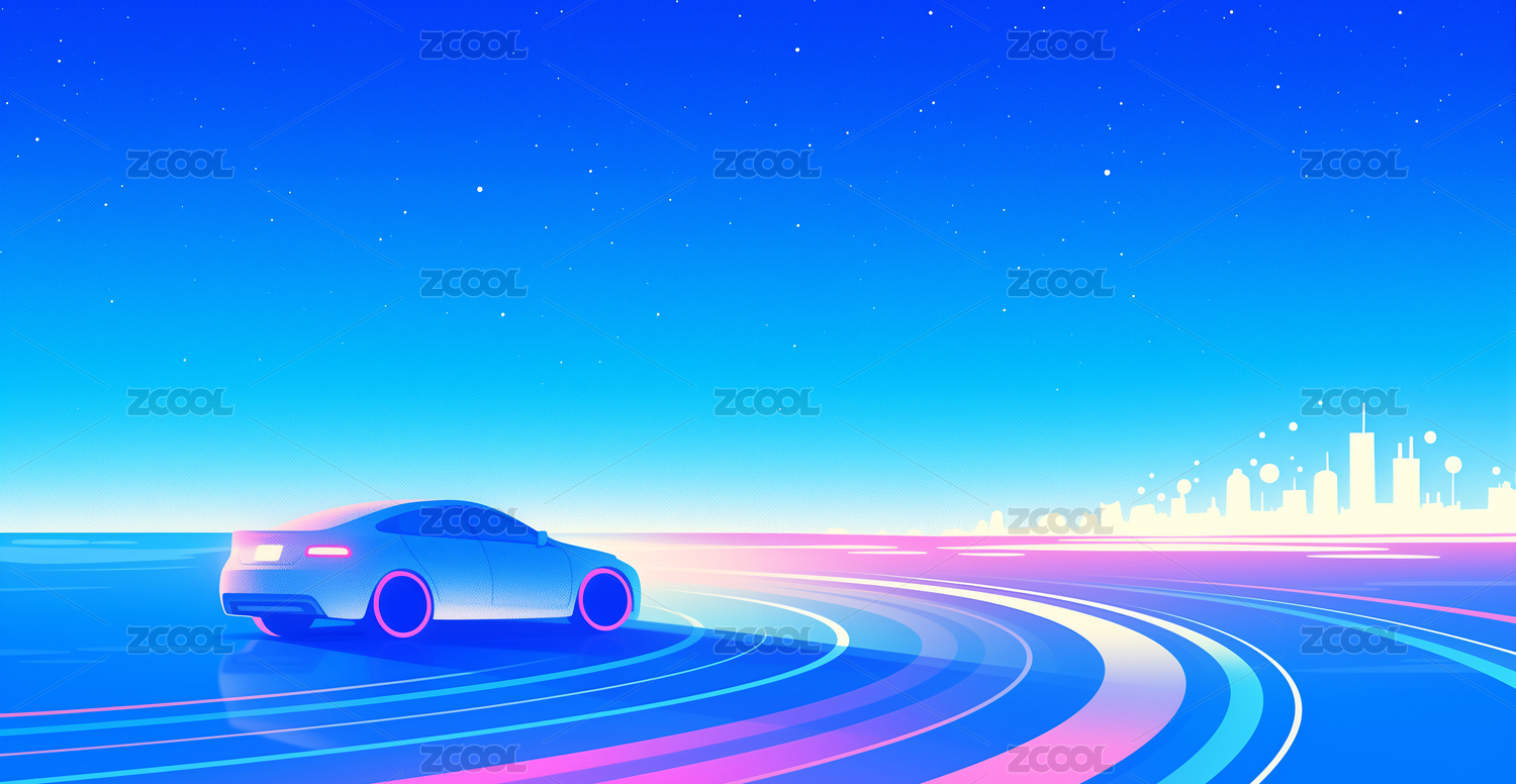 新能源电动汽车在高速路上行驶炫彩流光插画
