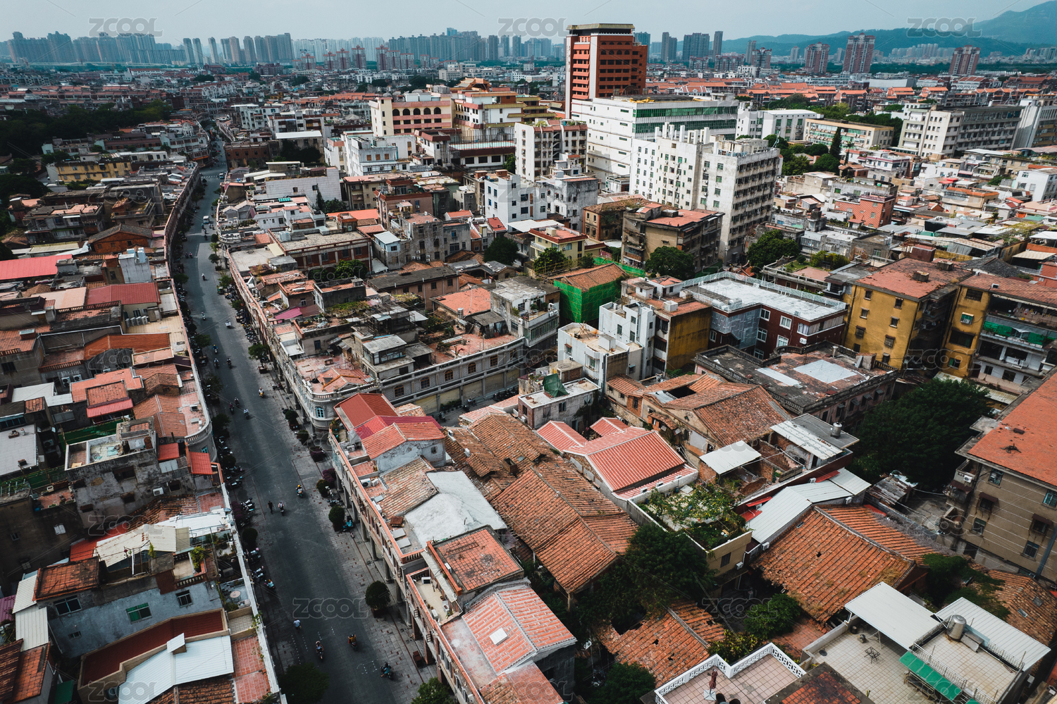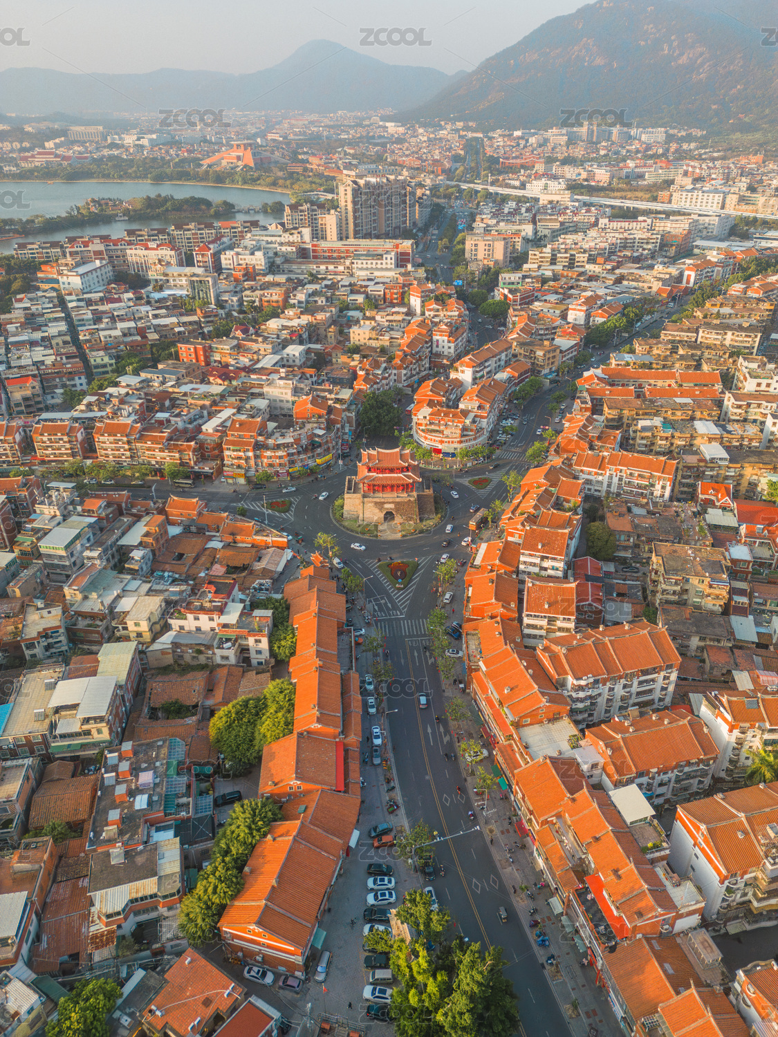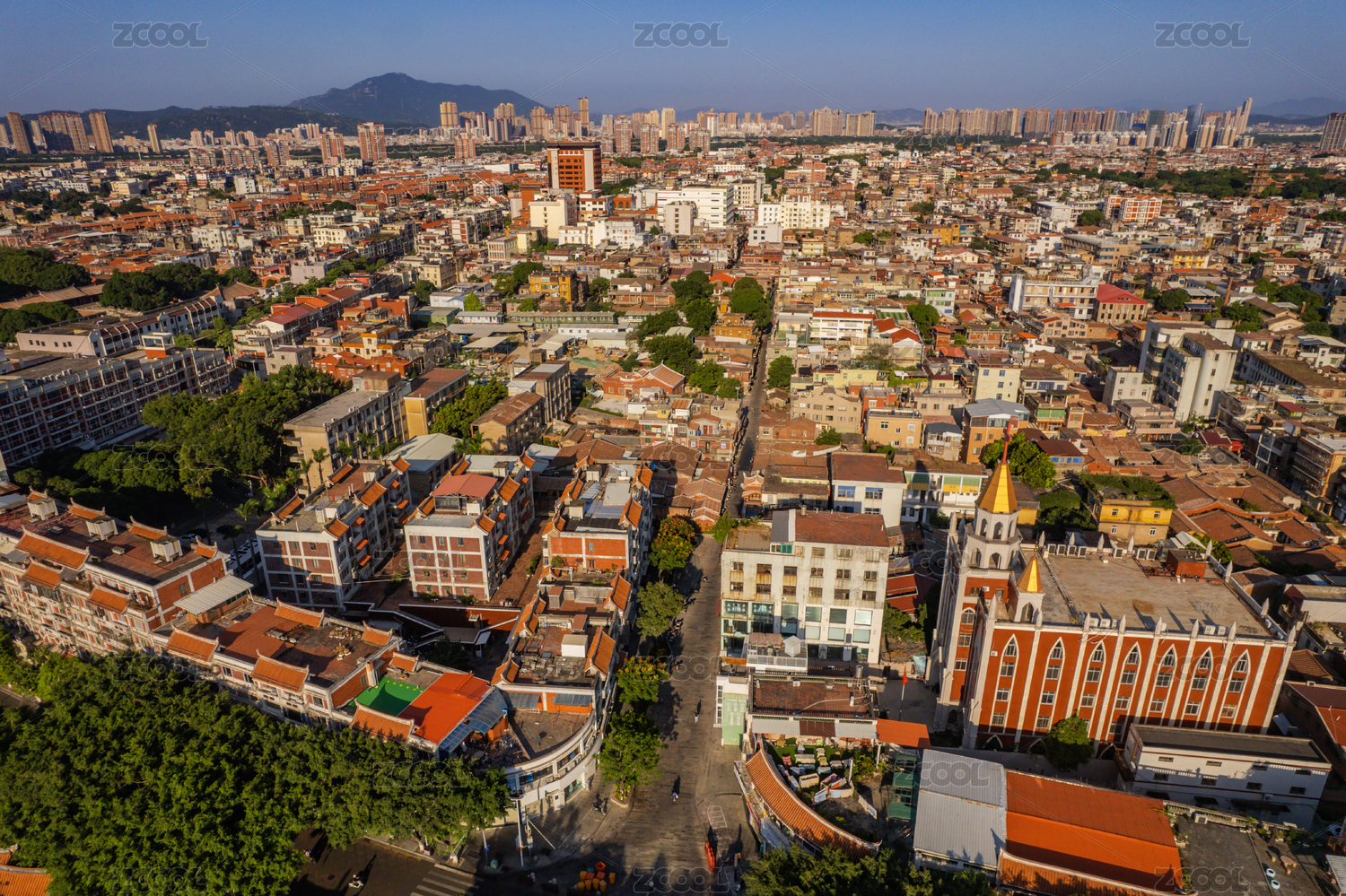 泉州古城鲤城区番仔楼与开元寺双塔航拍