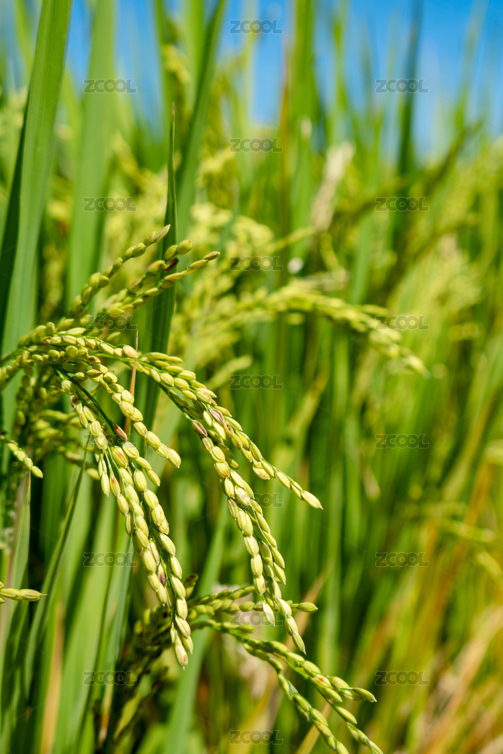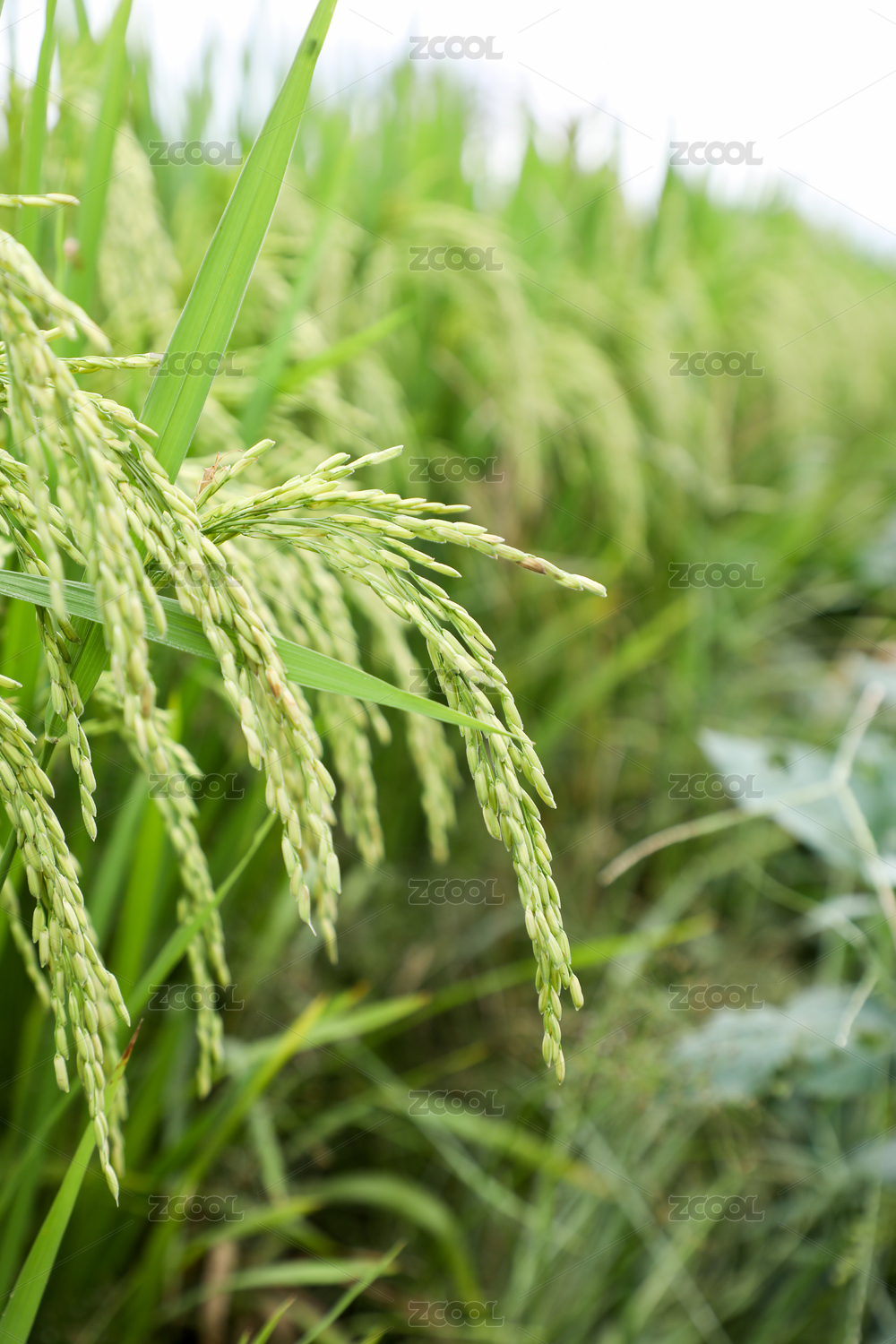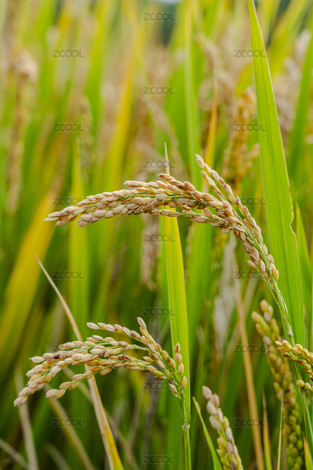 中国南方夏季稻田绿色水稻特写