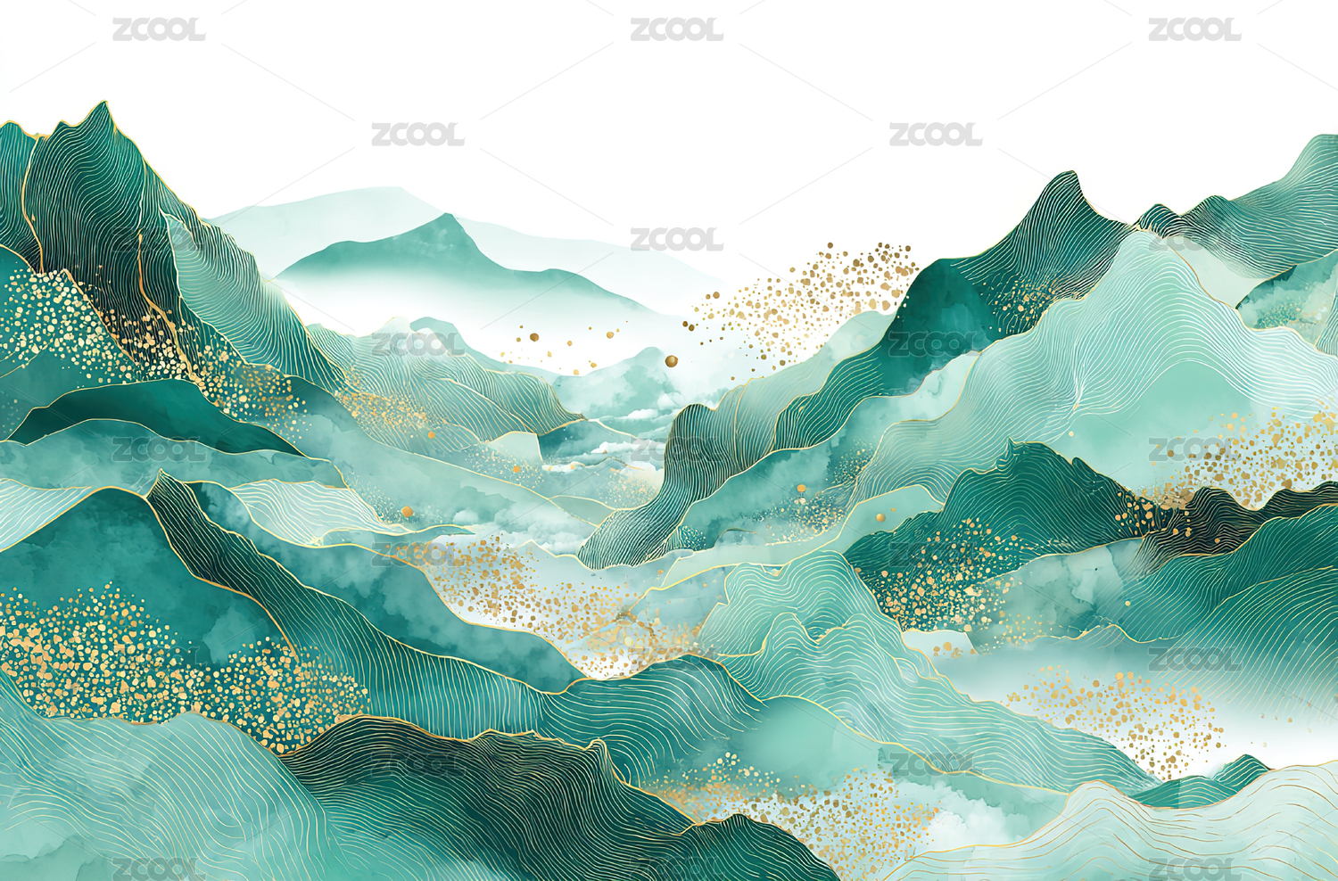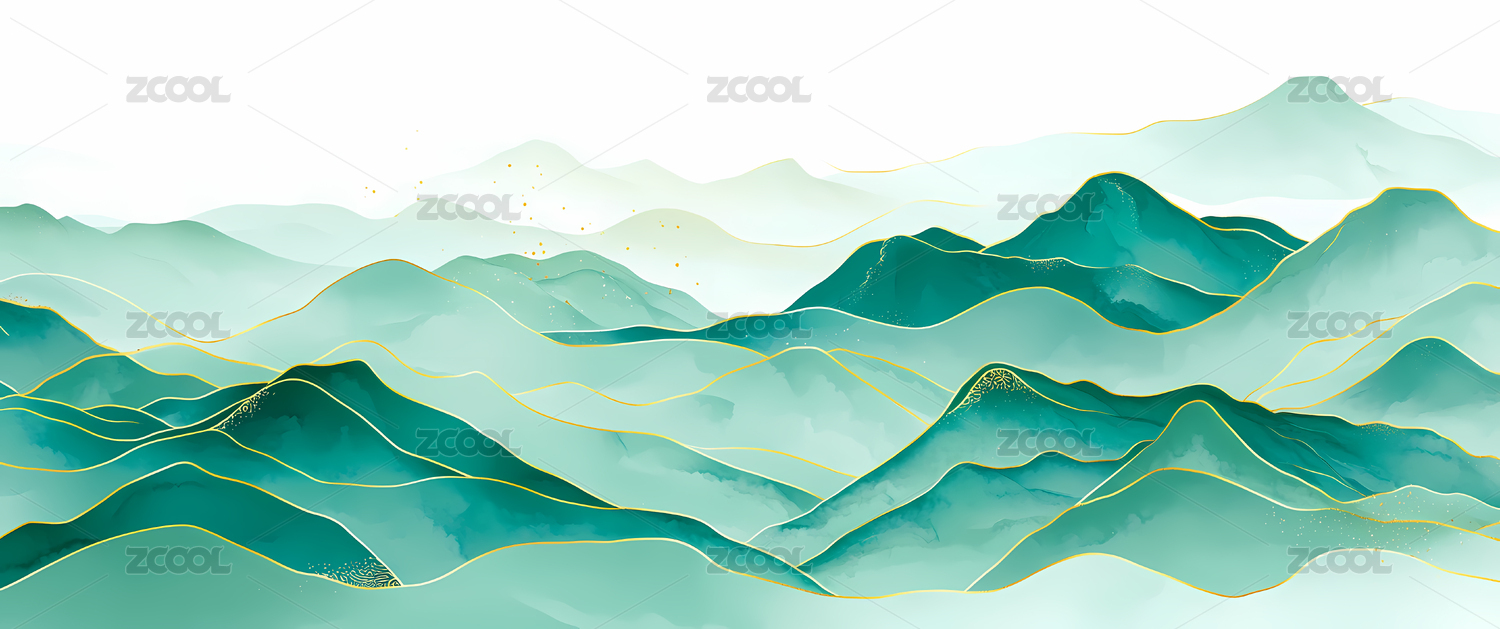 抽象绿色山峦风景画