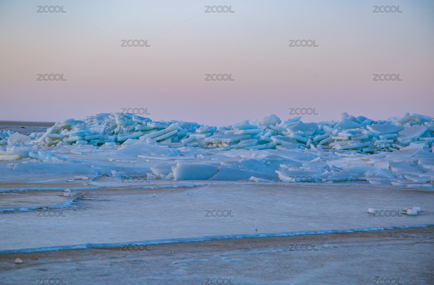 中国河北省张家口沽源县库伦淖冬季湖面冰裂景观