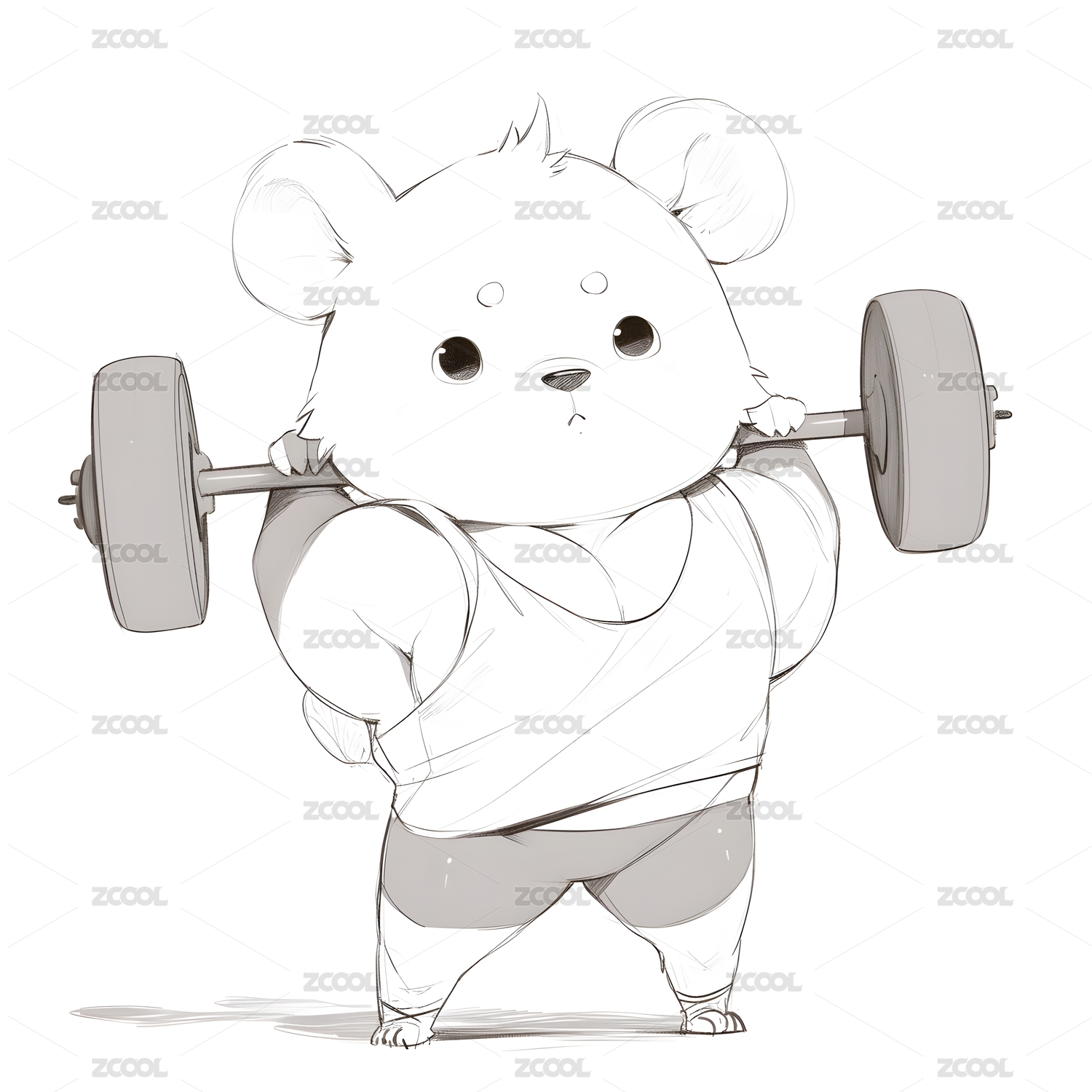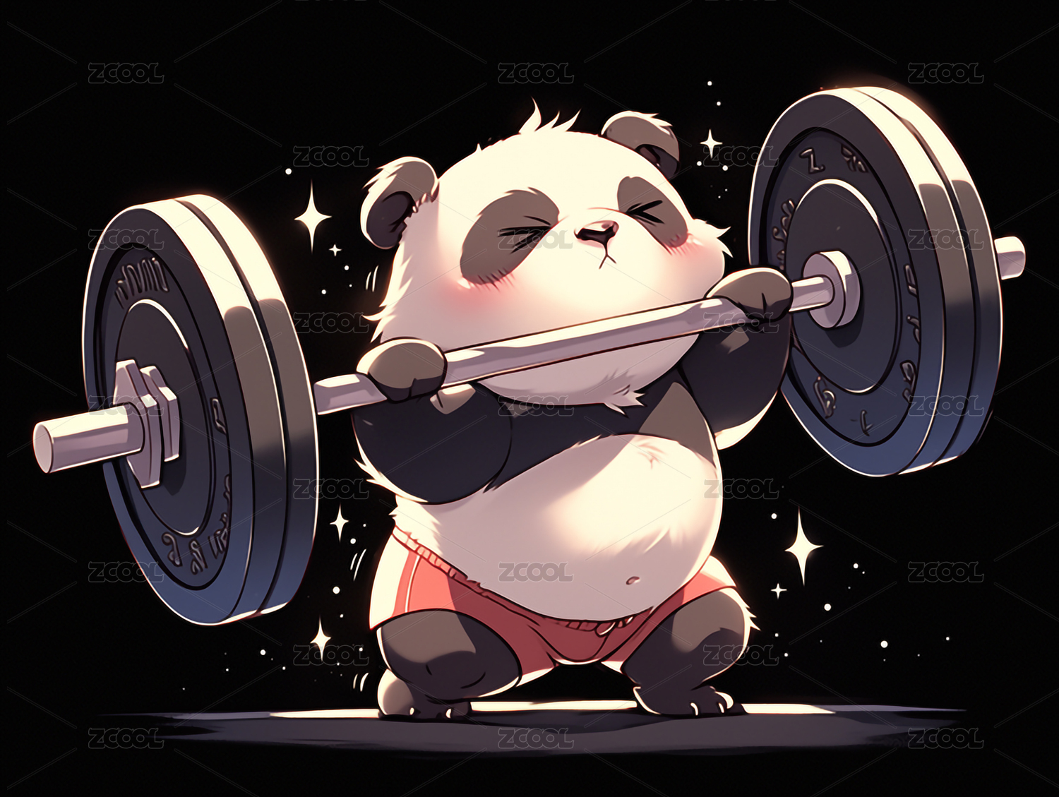 AIGCTA2024,动物,萌宠,呆萌,杠铃,哑铃,举重,抓举,挺举,运动